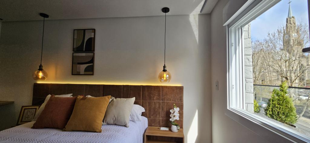 Belíssimo apartamento de 01 dormitório, mobiliado, cozinha integrada, com ampla sala de jantar e estar e uma maravilhosa sacada de 8,00 m², com vista espetacular para a Catedral de Pedra de Canela. 2 vagas de estacionamento. Localização privilegiáda no centro a poucos metros da Catedral.