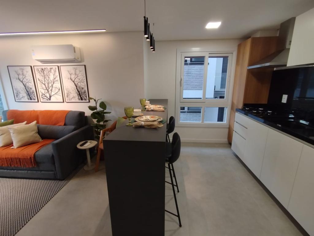 Características: 01 Dormitório, Água Quente, Banheiro Social, Cozinha integrada, Fechadura digital, Mobiliado, Sacada, Sala de Estar, Sala de Jantar, Split