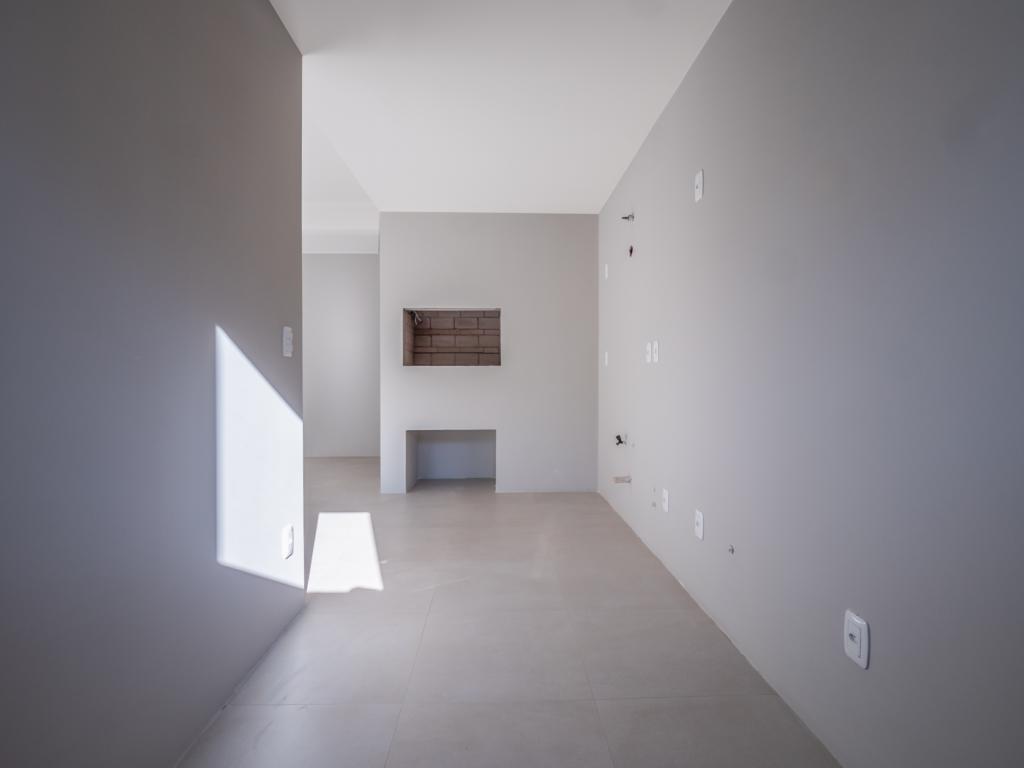 Características: 01 Dormitório, Área de Serviço, Banheiro Social, Cozinha integrada com churrasqueira, Espera para lareira, Espera para split, Esquadrias externas em PVC com vidro duplo, Sala de Estar, Sala de Jantar