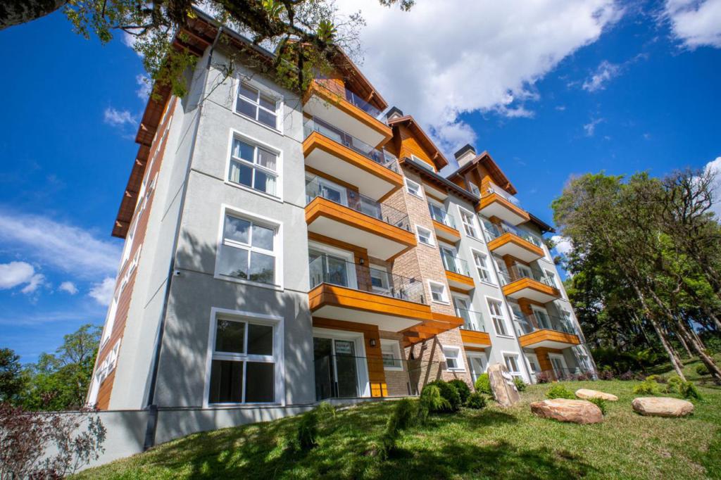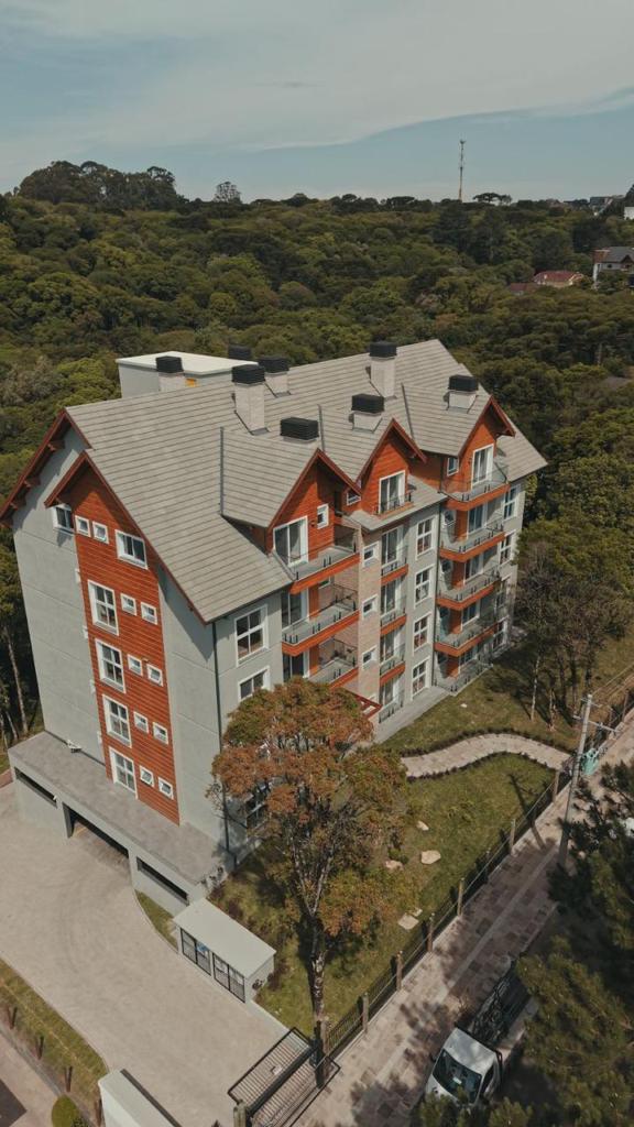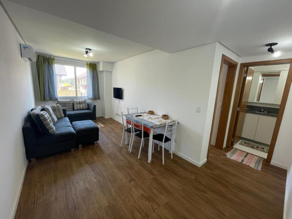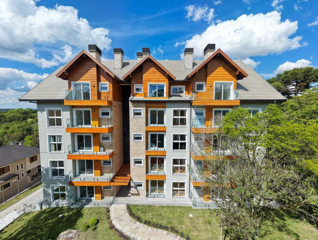 Apartamento de 1 suíte, lavabo, cozinha integrada com churrasqueira, esperas para split e lareira, sala de jantar e estar, localizado em bairro residencial completo com toda infraestrura a poucos minutos do centro de Gramado.