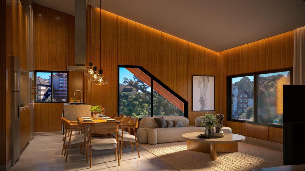 Características: 01 Suíte, Área de Serviço, Cozinha integrada com churrasqueira, Espera para água quente, Espera para calefação, Espera para lareira, Espera para split, Fechadura digital, Lavabo, Sala de Estar, Sala de Jantar