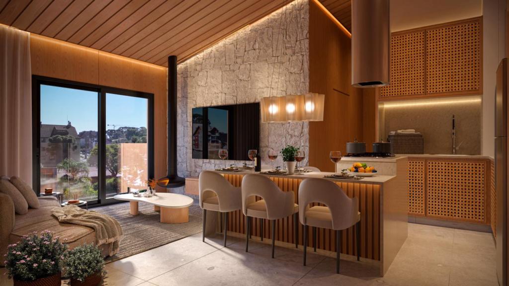 Imagine viver em um lugar onde aarquitetura conversa com a natureza, e cada detalhe foi pensado pra trazer conforto, beleza e aquela sensação boa de estar em casa. Assim é o Casabella Residence! Aconchego, tranquilidade e conforto perto da natureza e no coração de Gramado, a cidade mais querida da Serra Gaúcha. Amplo apartamento de 01 suíte com excelente área social, localização privilegiada no centro de Gramado, a poucos metros da charmosa Rua Coberta.