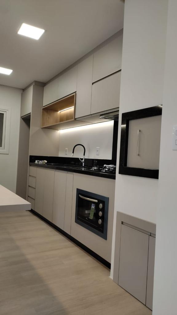 Características: 01 Dormitório, Área de Serviço, Banheiro Social, Cozinha integrada com churrasqueira, Espera para calefação, Espera para lareira, Espera para split, Móveis fixos, Sacada, Sala de Estar, Sala de Jantar