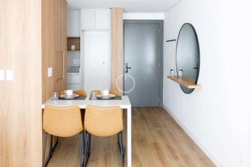 Características: 01 Dormitório (01 suíte), Área de Serviço, Cozinha integrada com churrasqueira, Espera para calefação, Espera para lareira, Espera para split, Lavabo, Mobiliado, Sala de Estar, Sala de Jantar