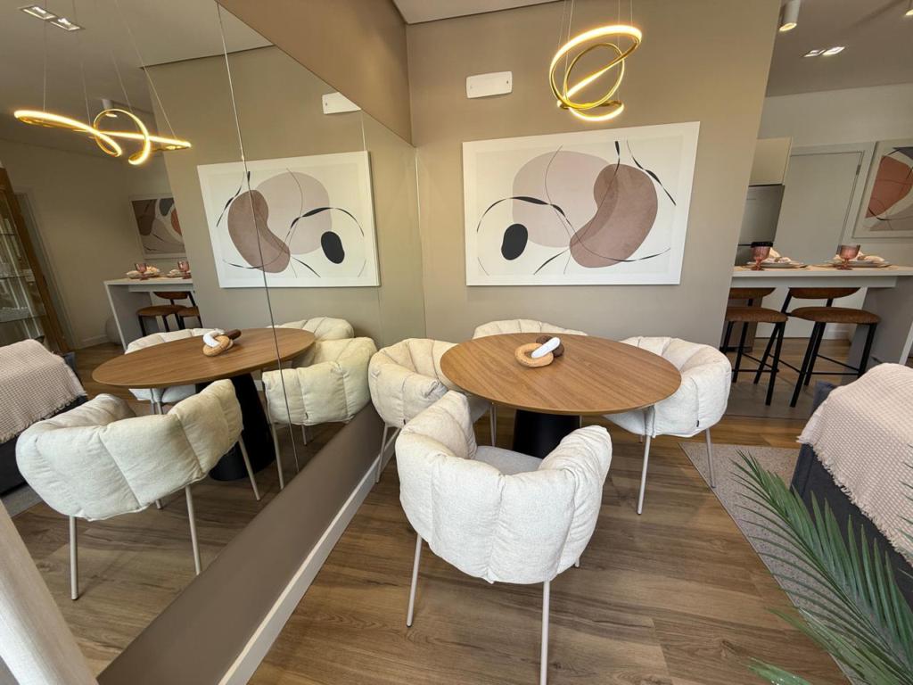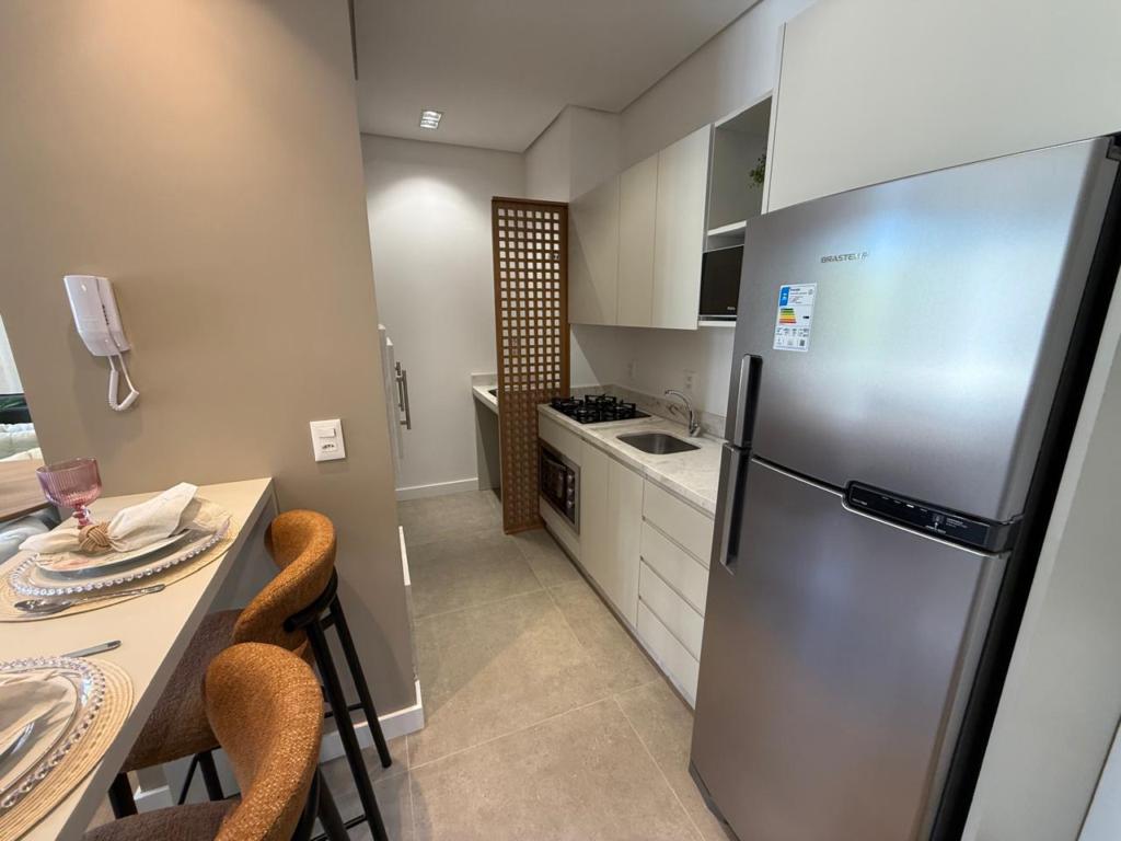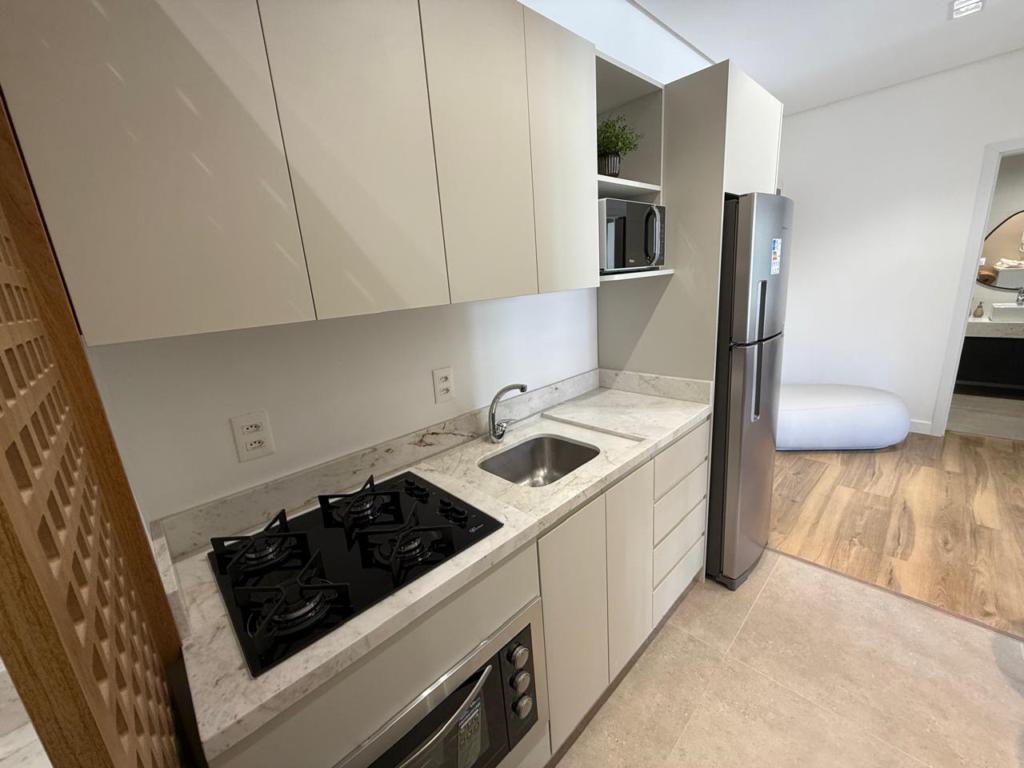 Características: 01 Dormitório, Área de Serviço, Banheiro Social, Cozinha integrada com churrasqueira, Espera para lareira, Espera para split, Mobiliado, Sacada, Sala de Estar, Sala de Jantar