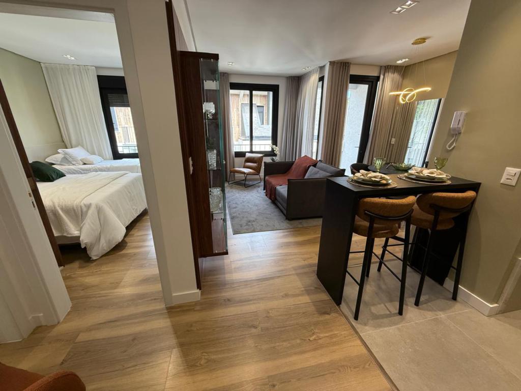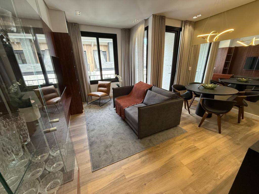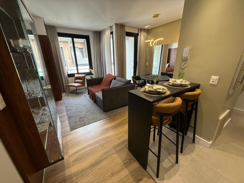 Apartamento de 01 dormitório, finamente mobiliado, com ampla área social. Localização privilegiada no Centro de Gramado, imediações da Rodoviária.