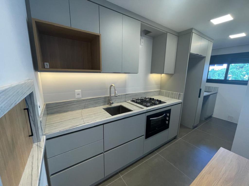 Belíssimo e amplo apartamento de 01 suíte, semi-mobiliado, cozinha integrada com churrasqueira, sacada, lavabo, esperas para split, calefação e lareira, vidros duplos e 01 vaga de garagem. Localização privilegiáda, no centro de Gramado, à poucos metros da Rua Coberta.