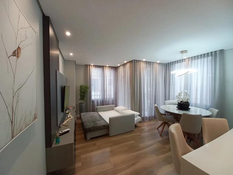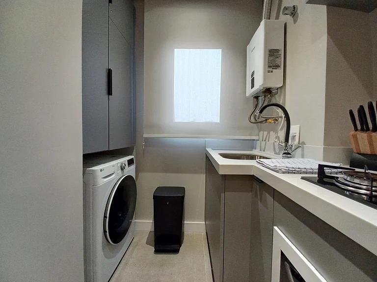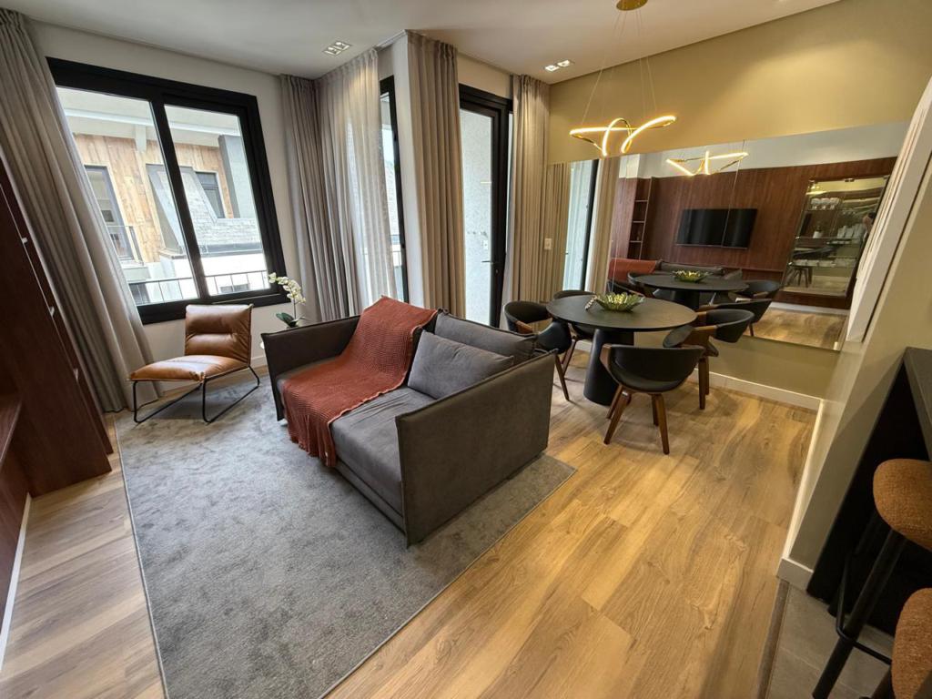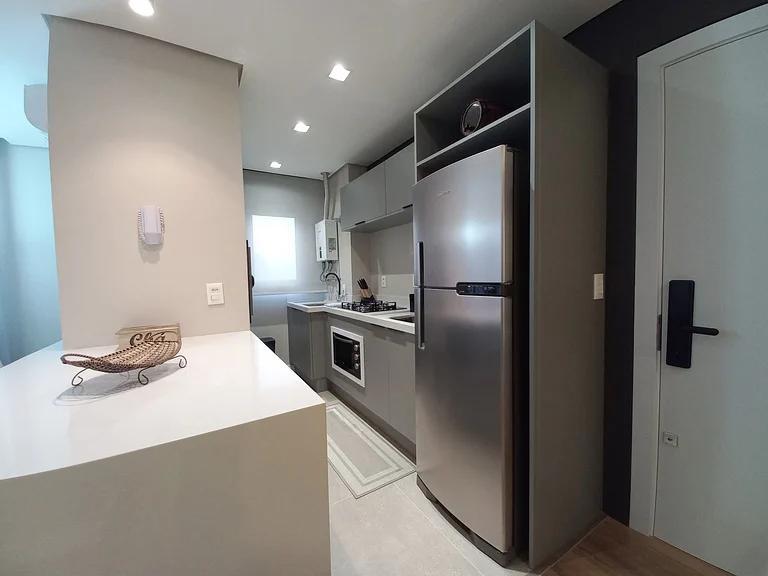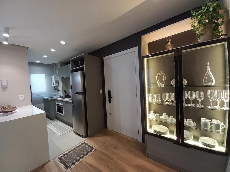 Características: 01 Dormitório, Água Quente, Área de Serviço, Banheiro Social, Cozinha integrada com churrasqueira, Espera para água quente, Espera para lareira, Espera para split, Mobiliado, Sacada, Sala de Estar, Sala de Jantar