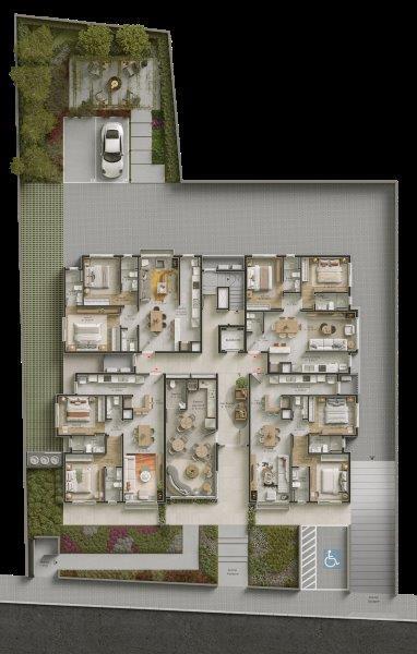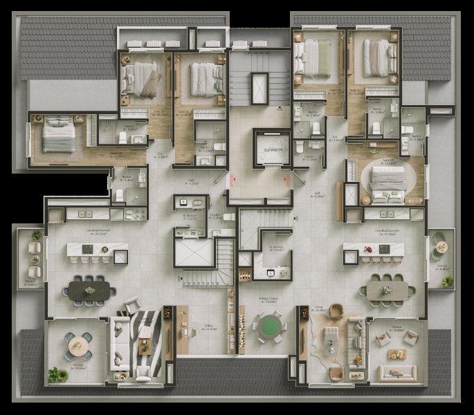 Características: 01 Suíte, Área de Serviço, Cozinha integrada com churrasqueira, Espera para água quente, Espera para calefação, Espera para lareira, Espera para split, Lavabo, Sala de Estar, Sala de Jantar