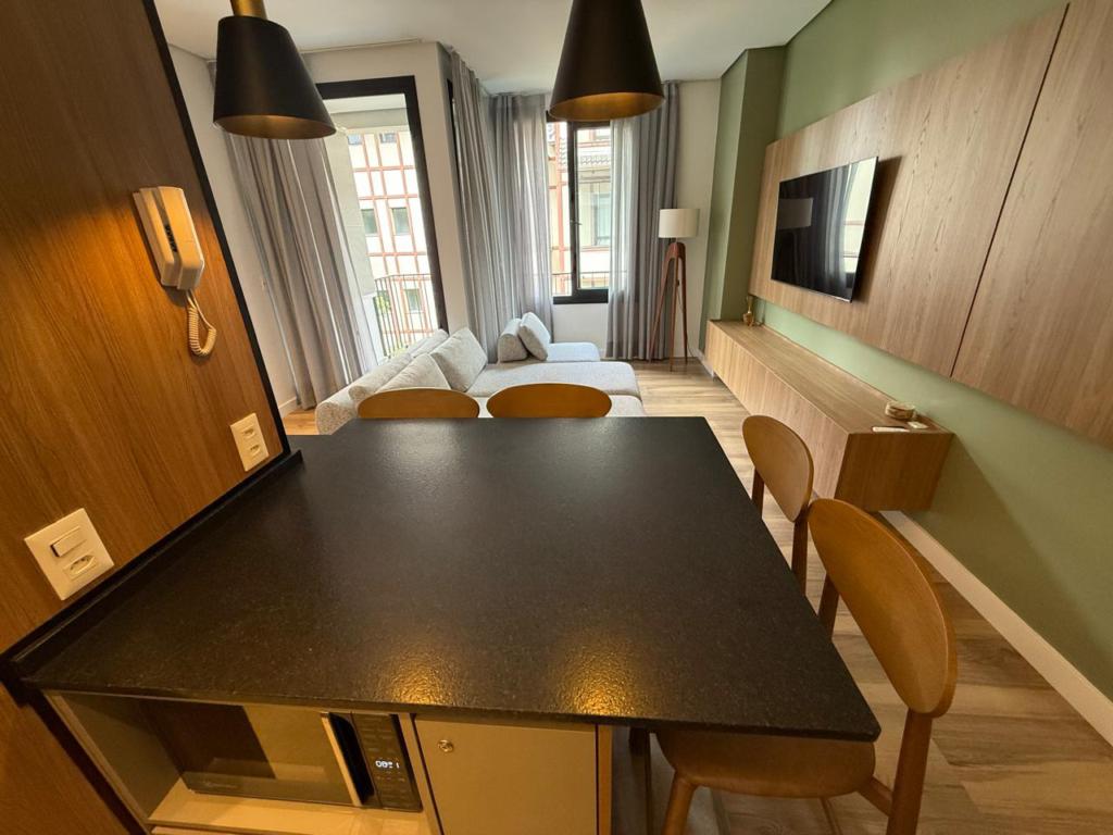 Características: 01 Dormitório, Área de Serviço, Banheiro Social, Cozinha integrada com churrasqueira, Espera para água quente, Espera para lareira, Espera para split, Sacada, Sala de Estar, Sala de Jantar