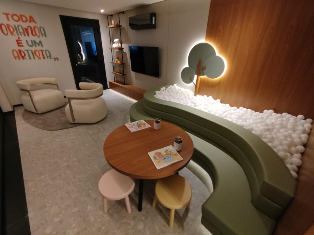 Infraestrutura: Brinquedoteca, Elevador, Espaço kids, Estar externo com lareira, Gás Central, Hall de entrada mobiliado, Medidores individuais de água, luz e gás, Pátio | Jardim, Porteiro Eletrônico, Sala de Fitness Equipada, Sala de jogos equipada, Salão de festas