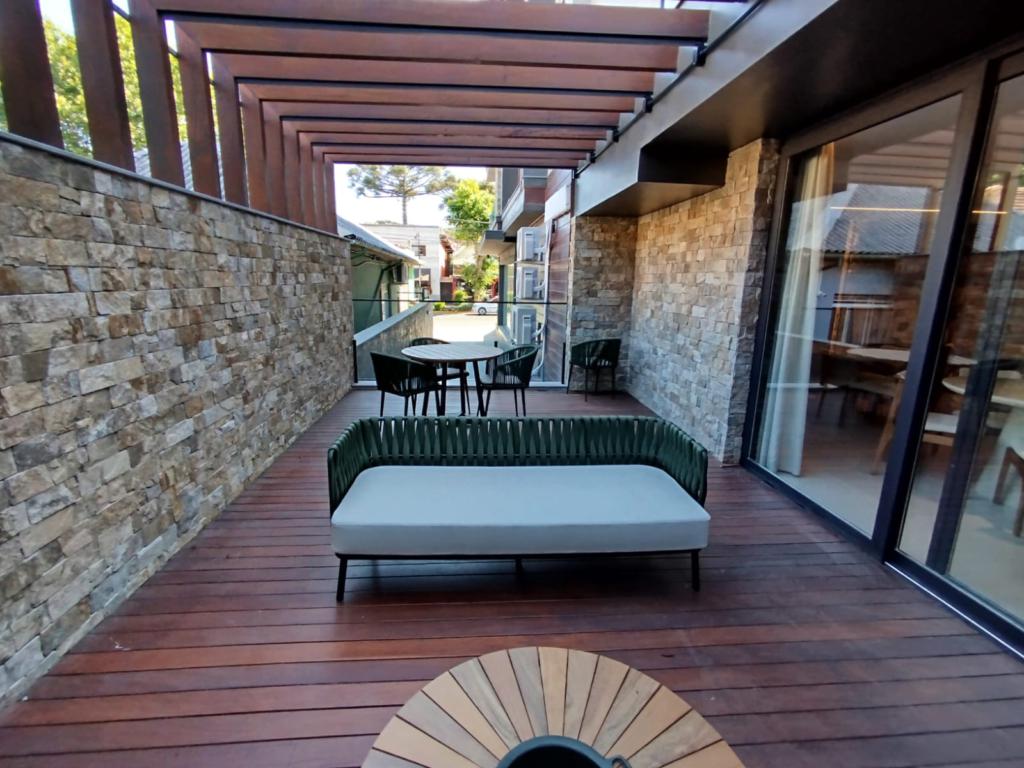 Empreendimento Araucá Canela, apartamento com 1 suíte, lavabo, cozinha integrada com churrasqueira, esperas para calefação, split e lareira, amplo espaço interno, 1 vaga de garagem, no centro de Canela, a poucas quadras da Catedral de Pedra.