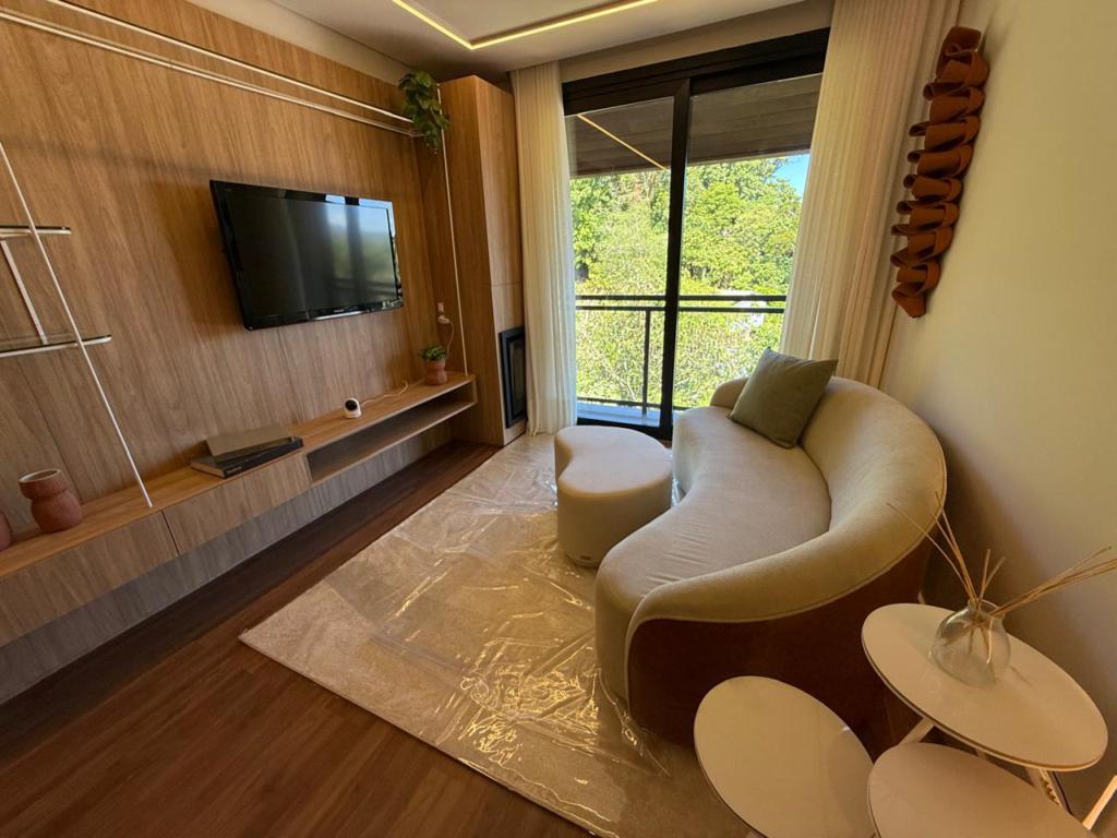 O Rural muito perto do urbano. O digital e o analógico combinados para um total conforto e bem-estar. Nas escalas de cidade, bairro e no próprio condomínio, uma das melhores e mais sofisticadas áreas condominiais de toda a região. O viver contemporâneo neste apartamento de 01 dormitório, sala de estar, jantar, cozinha integrada com churrasqueira e uma vista permanente para o Vale das Monstanhas.