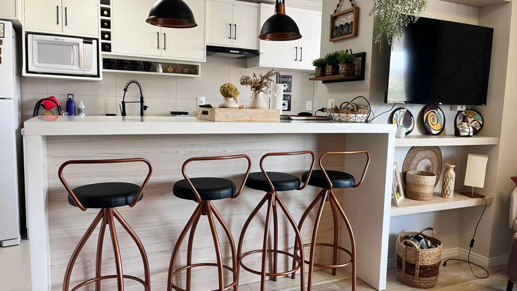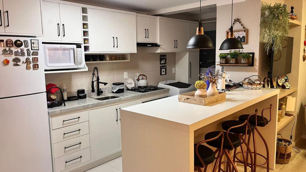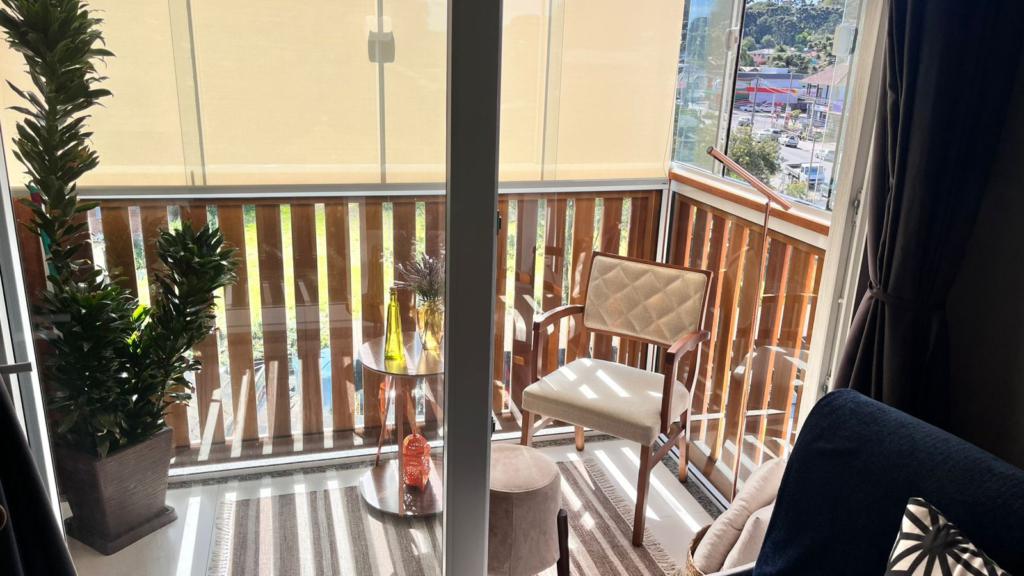 Características: 01 Suíte, Água Quente, Área de Serviço, Cozinha integrada, Espera para lareira, Lavabo, Mobiliado, Sacada com churrasqueira, Sala de Estar, Sala de Jantar, Split instalado em todas as peças
