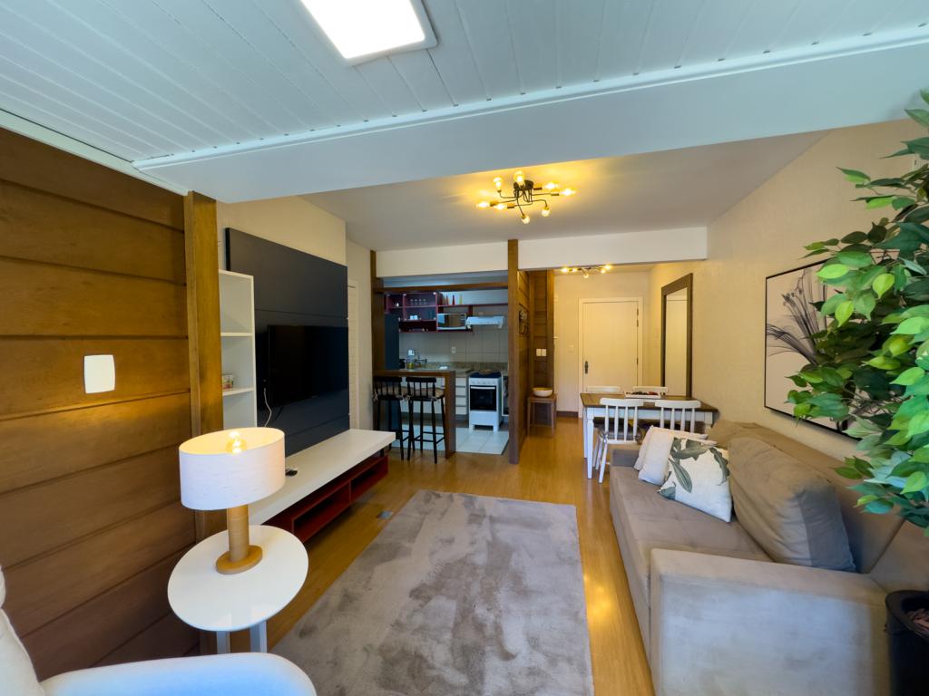 Características: 01 Dormitório, Adega, Água Quente, Área de Serviço, Banheiro Social, Cozinha integrada, Espera para calefação, Espera para lareira, Hall, Lareira, Mobiliado, Sacada integrada, Sala de Estar, Sala de Jantar, Split