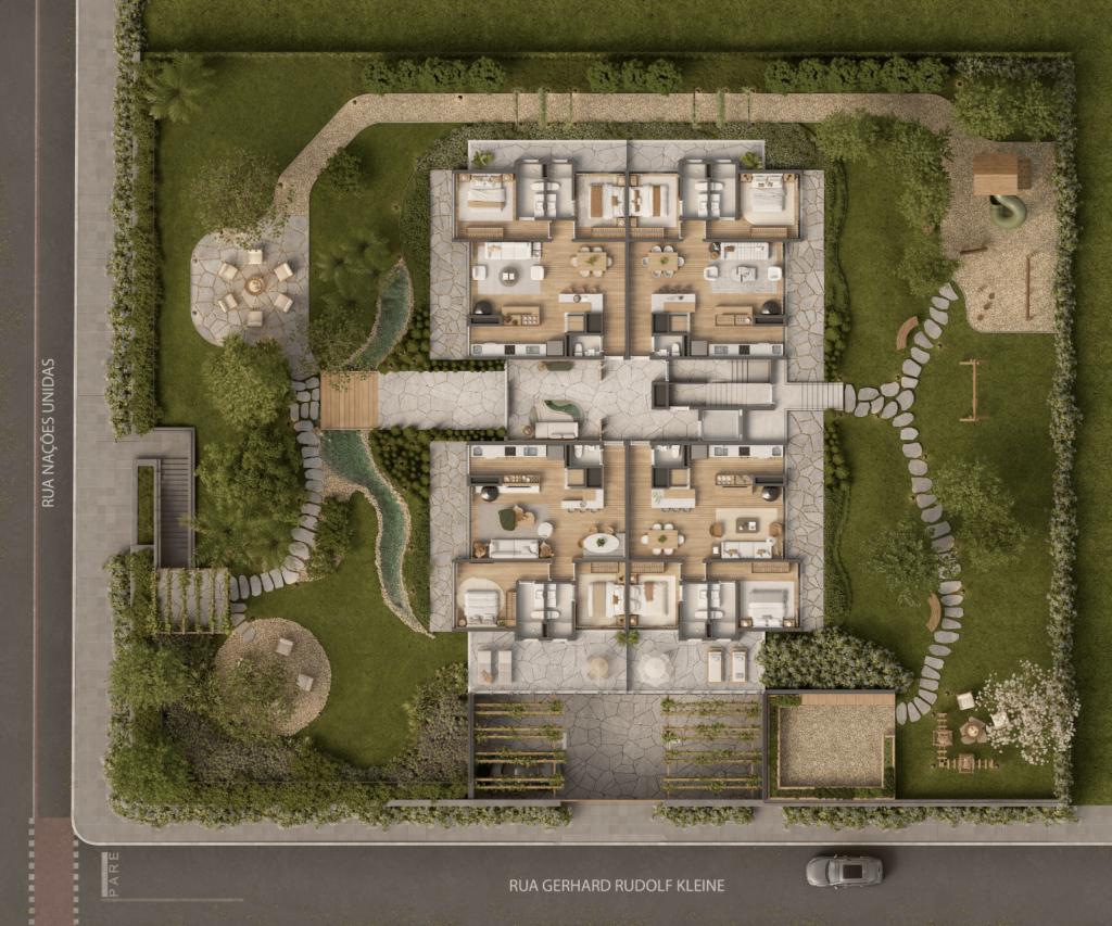 Infraestrutura: Aproveitamento de água da chuva, Coleta de água da chuva, Controle de acesso facial, Deck externo com fogo de chão, Elevador, Espaço Fire Fit (Espaço para fogueira ao ar livre), Espera para carregador veícular, Gás Central, Gerador, Hall de entrada mobiliado, Horta comunitária, Medidores individuais de água, luz e gás, Paisagismo, Pátio | Jardim, Playground, Porteiro Eletrônico, Reconhecimento Facial, Tomadas para carros elétricos