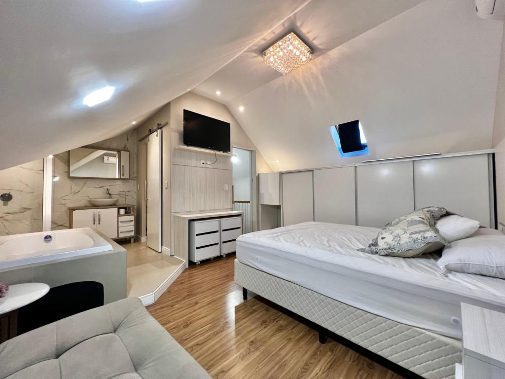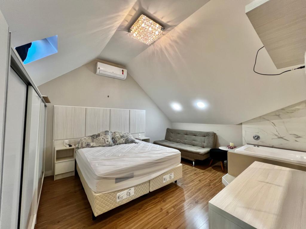 Características: 02 Suítes, Água Quente, Área de Serviço, Cozinha integrada com churrasqueira, Espera para calefação, Garagem para 02 carros, Lavabo, Mobiliado, Sacada, Sala de Estar com lareira, Sala de Jantar, Split