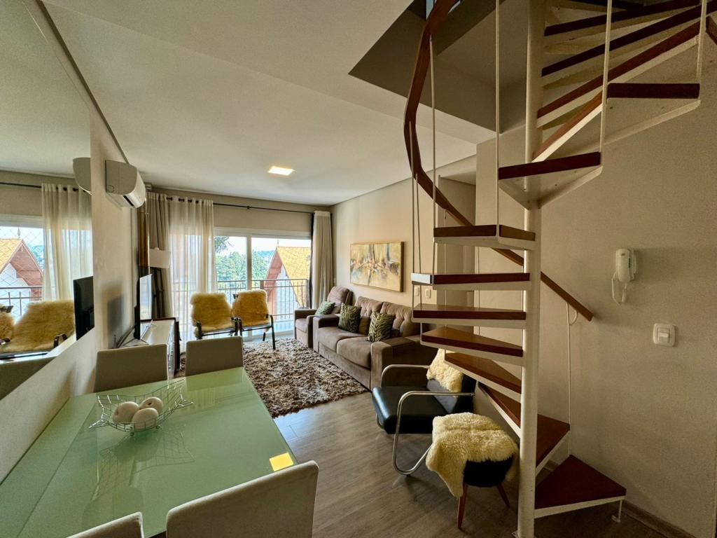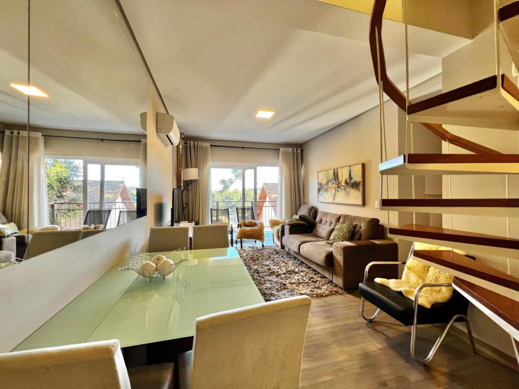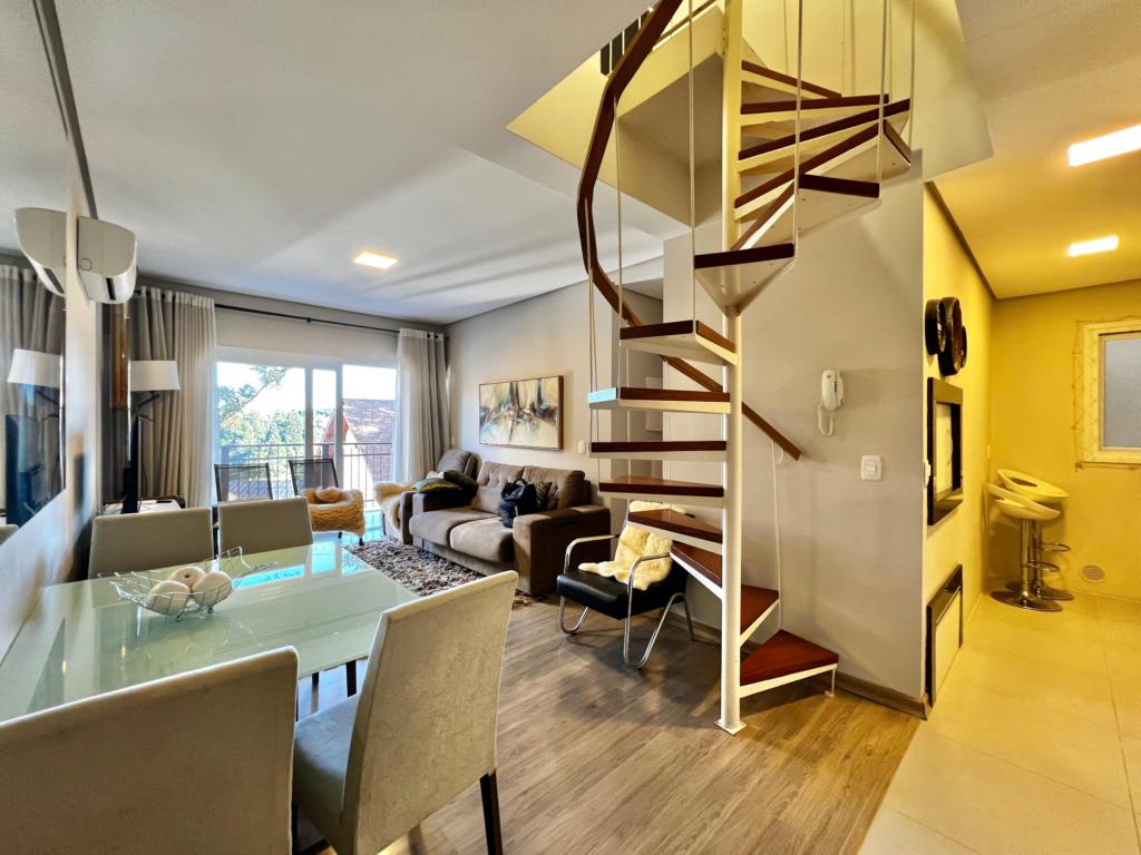 Aconchegante apartamento de 2 suítes, duplex, mobiliado e com duas vagas de estacionamento, em condomínio cercado de natureza e tranquilidade, em bairro residencial de Gramado, com infraestrutura de lazer e segurança para você e sua familia aproveitarem o melhor da Serra Gaúcha.