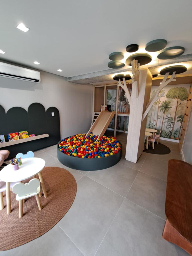 Infraestrutura: Ampla área de lazer Infantil e adulto, Área de Lazer, Bicicletário, Brinquedoteca, Elevador, Espaço fitness, Espaço gourmet mobiliado, Espaço kids, Espaço Pet, Gás Central, Lavanderia Coletiva Equipada, Medidores individuais de água, luz e gás, Miniquadra de futebol, Piscina Térmica, Playground, Porteiro Eletrônico