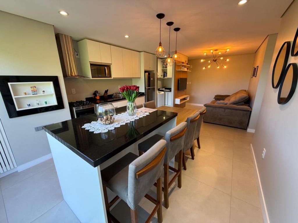 Características: 02 Dormitórios (01 suíte), Água Quente, Área de Serviço, Banheiro Social, Cozinha integrada com churrasqueira, Espera para lareira, Mobiliado, Sala de Estar, Sala de Jantar, Split