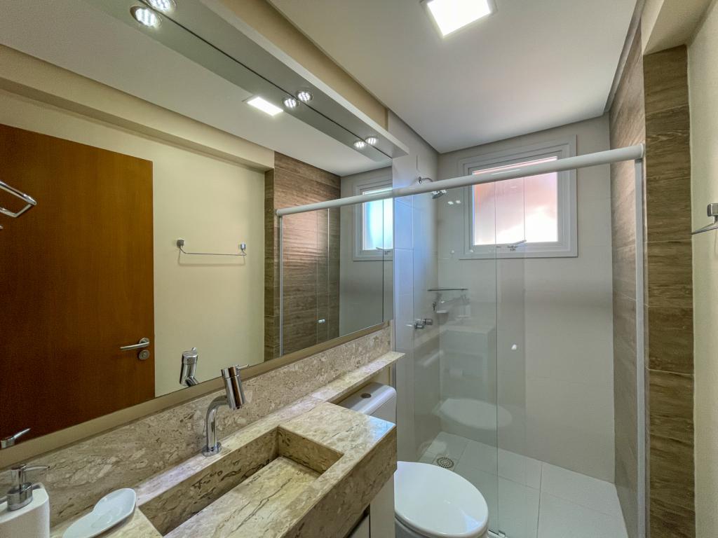 Características: 02 Dormitórios (01 suíte), Área de Serviço, Box, Cozinha integrada com churrasqueira, Espera para calefação, Espera para lareira, Esquadrias em PVC, Mobiliado, Sala de Estar, Sala de Jantar, Split