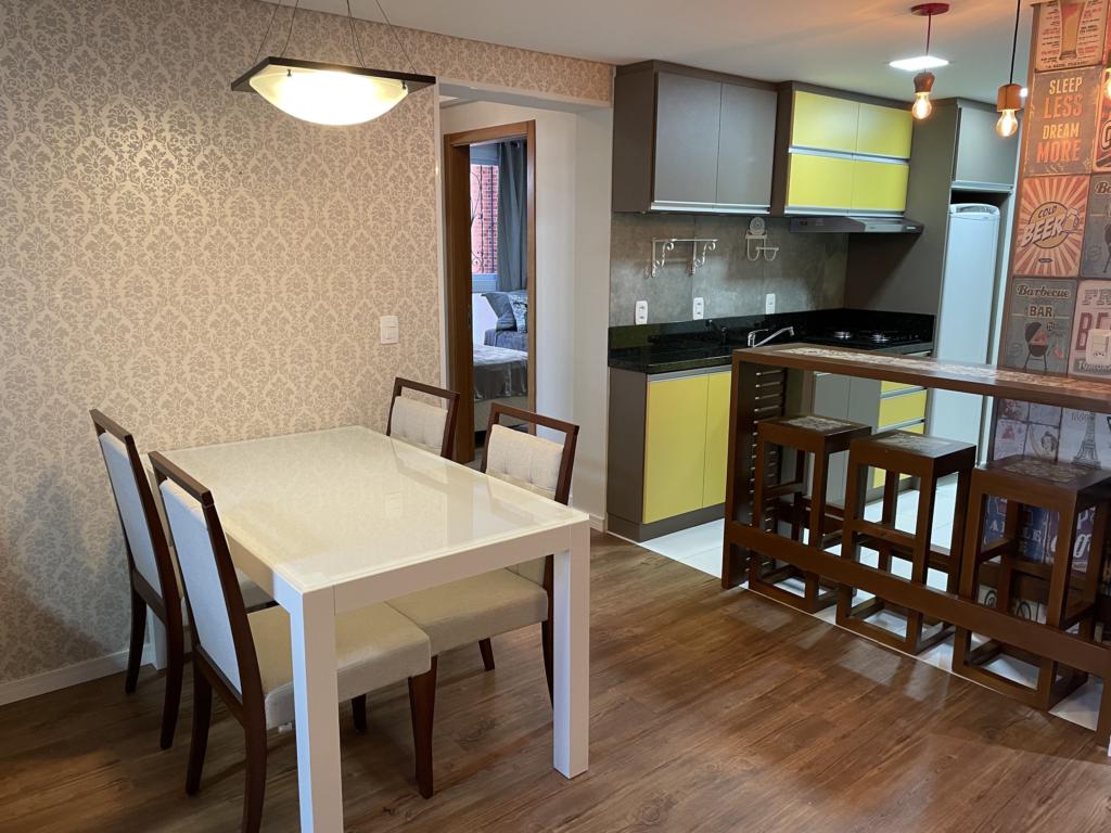 Características: 02 Dormitórios (01 suíte), Água Quente, Área de Serviço, Banheiro Social, Cozinha integrada com churrasqueira, Espera para calefação, Mobiliado, Sala de Estar com lareira, Sala de Jantar, Split