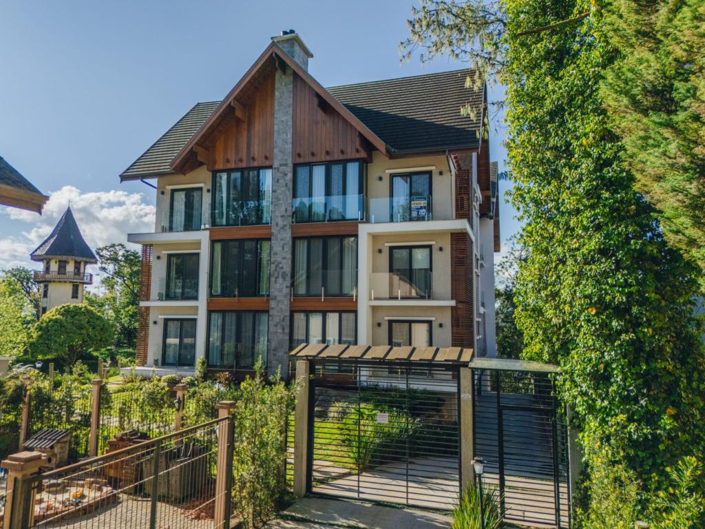 Excelente apartamento de 2 suítes mais lavabo, mobiliado, com todo o conforto de climatização com espera calefação, split e lareira instalados, cozinha integrada com churasqueira, tudo isso em uma localização privilegiada no nobre bairro Bavária com linda vista para Vale.