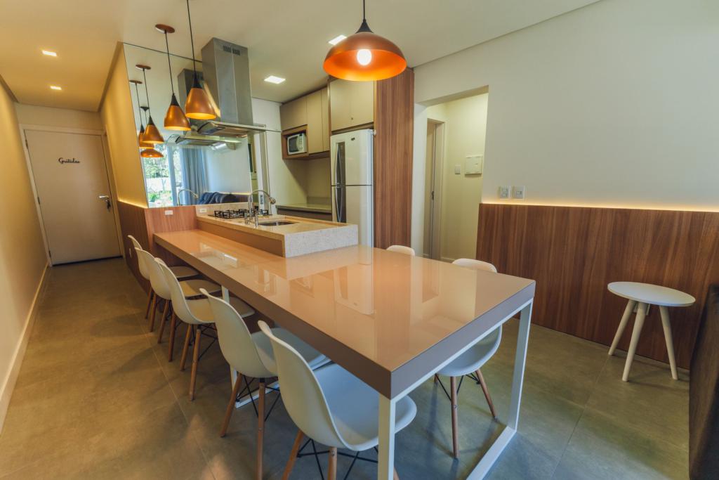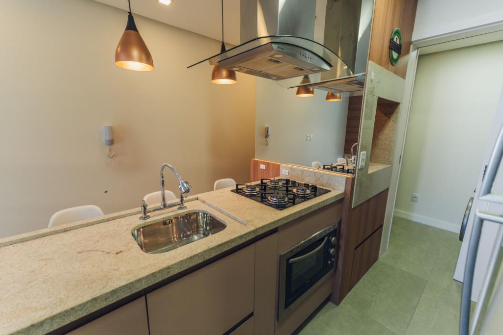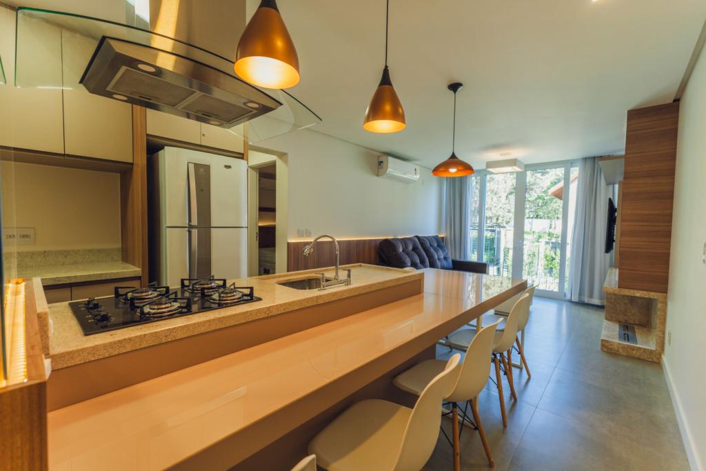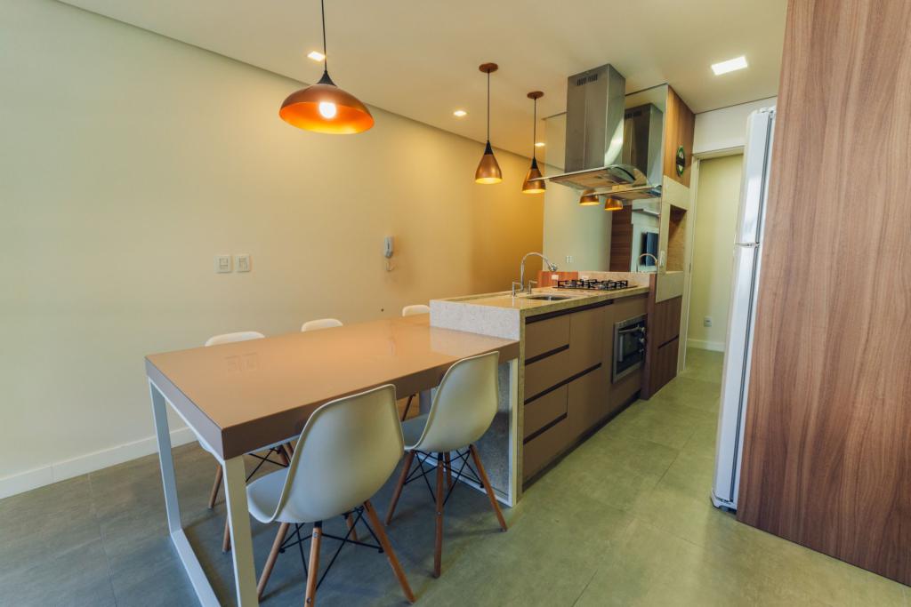 Características: 02 Suítes, Água Quente, Área de Serviço, Cozinha integrada com churrasqueira, Espera para calefação, Lavabo, Mobiliado, Sacada, Sala de Estar com lareira, Sala de Jantar, Split