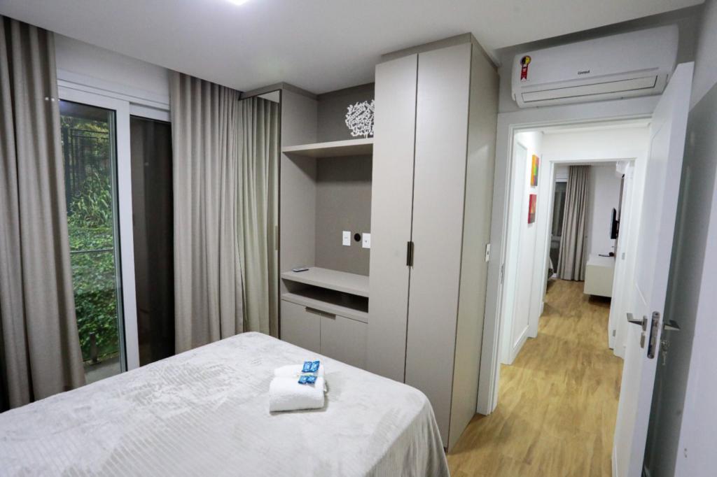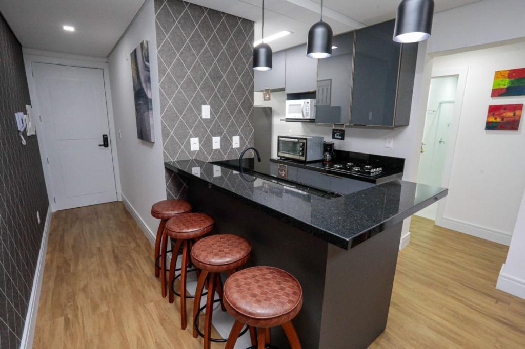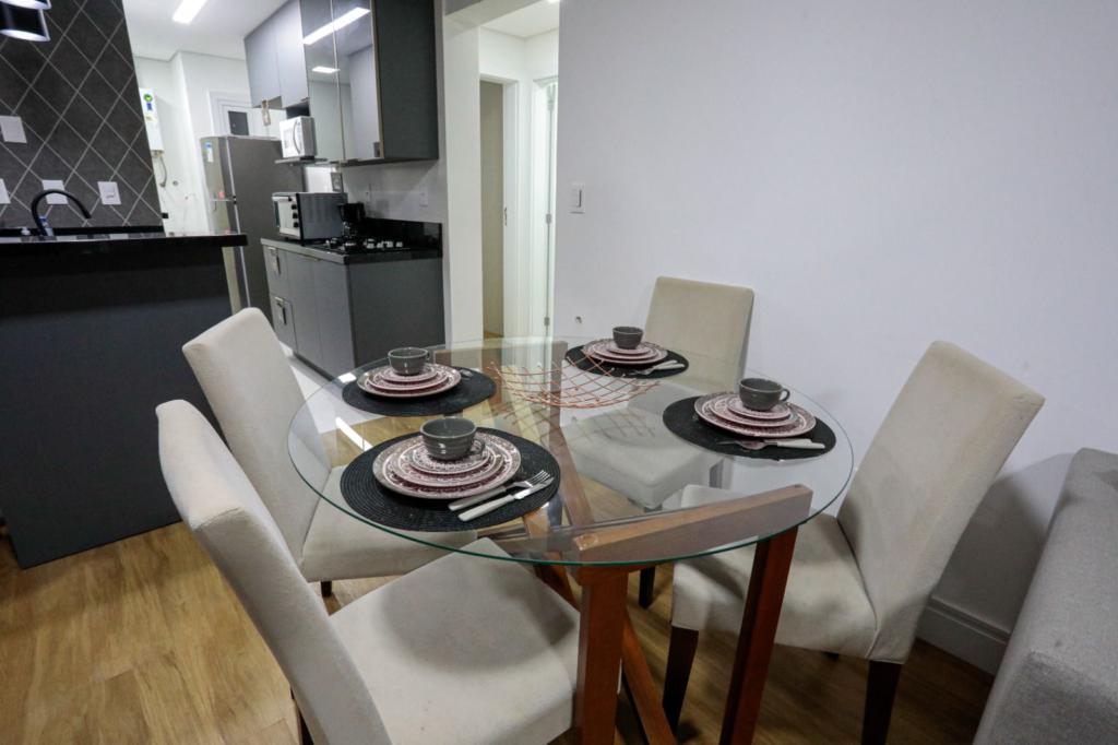 Características: 02 Dormitórios (01 suíte), Água Quente, Área de Serviço, Banheiro Social, Cozinha integrada com churrasqueira, Espera para calefação, Espera para lareira, Mobiliado, Sala de Estar, Sala de Jantar, Split