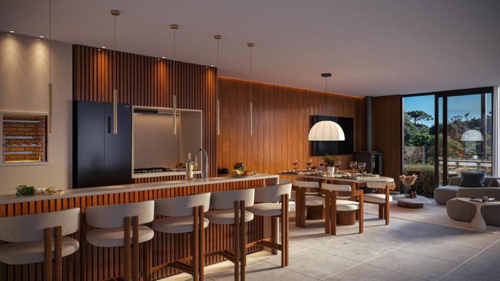 Características: 02 Suítes, Área de Serviço, Cozinha integrada com churrasqueira, Espera para água quente, Espera para calefação, Espera para lareira, Espera para split, Fechadura digital, Lavabo, Sala de Estar, Sala de Jantar