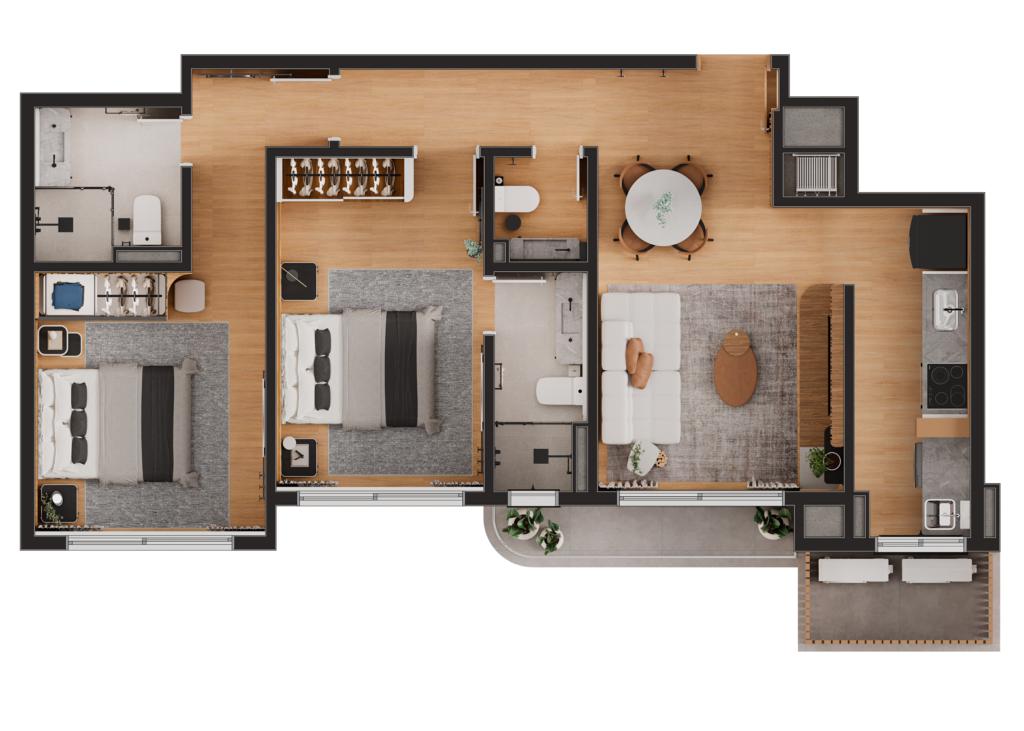 Características: 02 Suítes, Área de Serviço, Cozinha integrada com churrasqueira, Espera para água quente, Espera para automação residencial, Espera para calefação, Espera para lareira, Espera para split, Lavabo, Sacada, Sala de Estar, Sala de Jantar