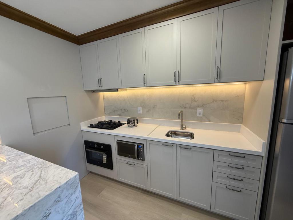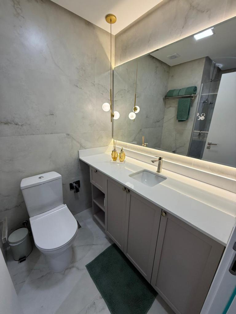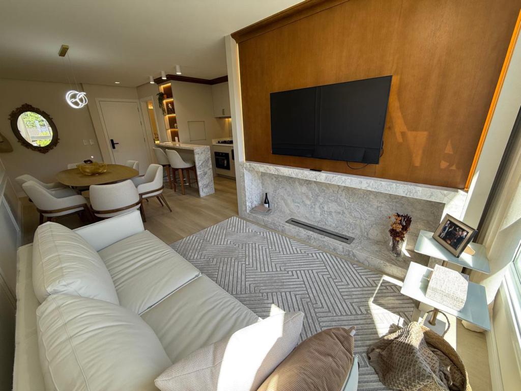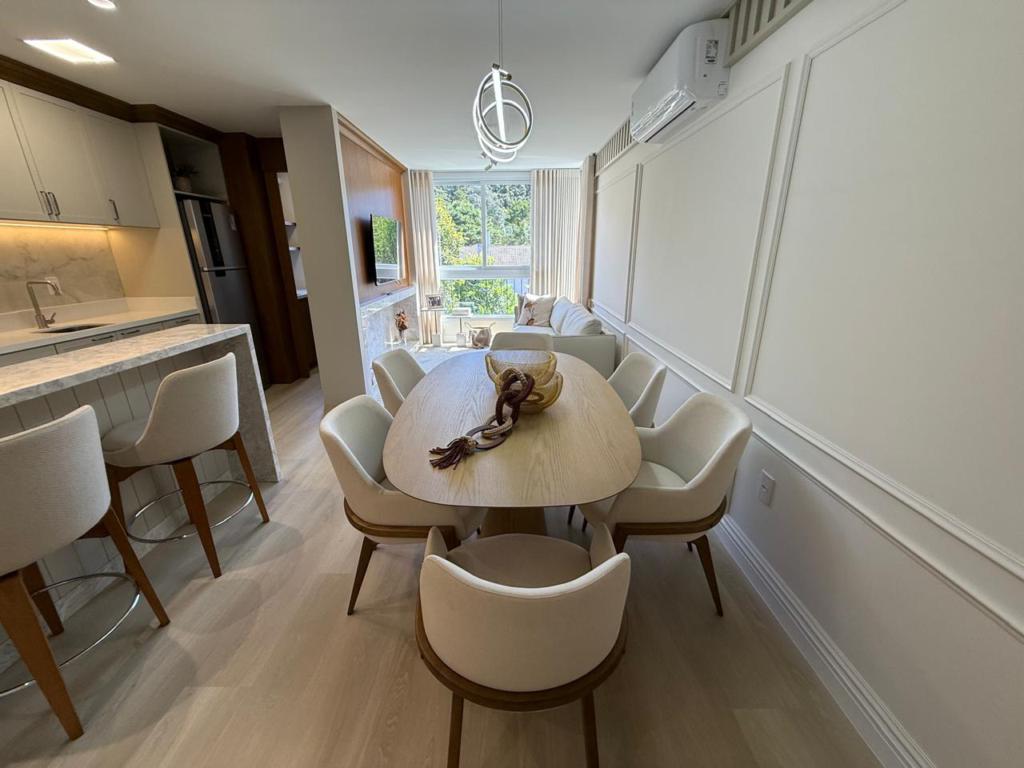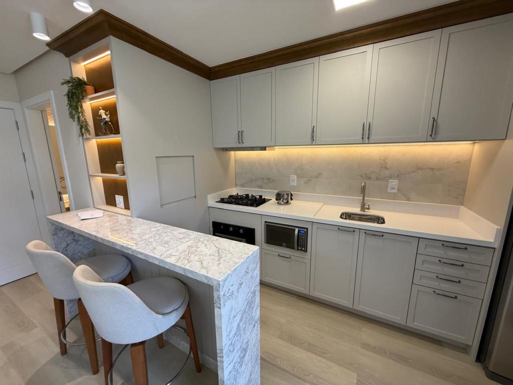 Características: 02 Suítes, Água Quente, Área de Serviço, Cozinha integrada com churrasqueira, Decoração, Espera para calefação, Lavabo, Mobiliado, Piso aquecido nos banheiros das suítes, Sala de Estar com lareira, Sala de Jantar, Split instalado em todas as peças