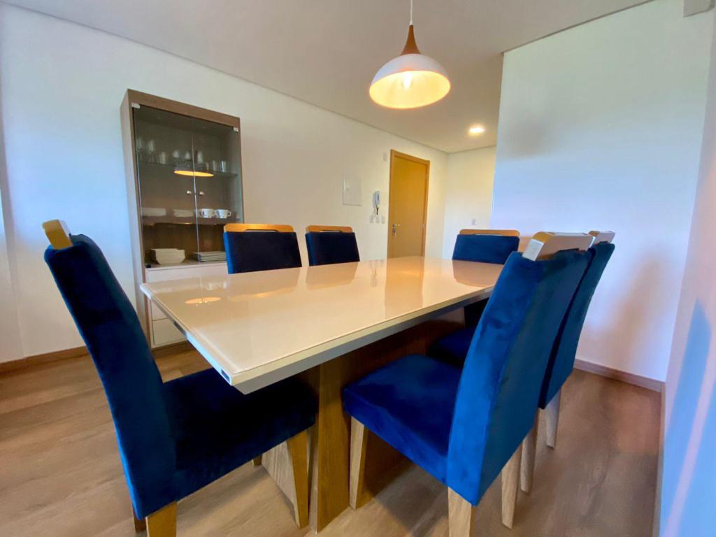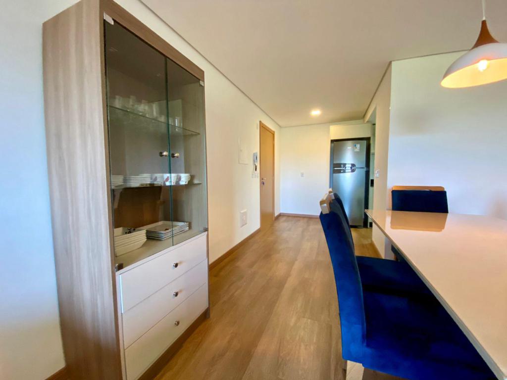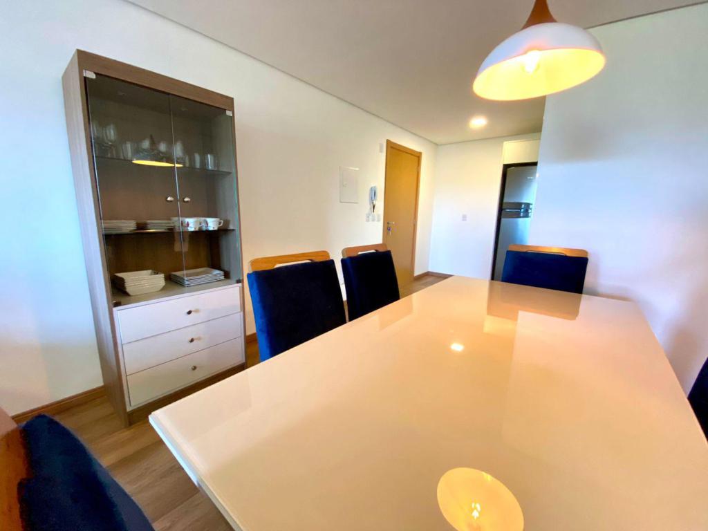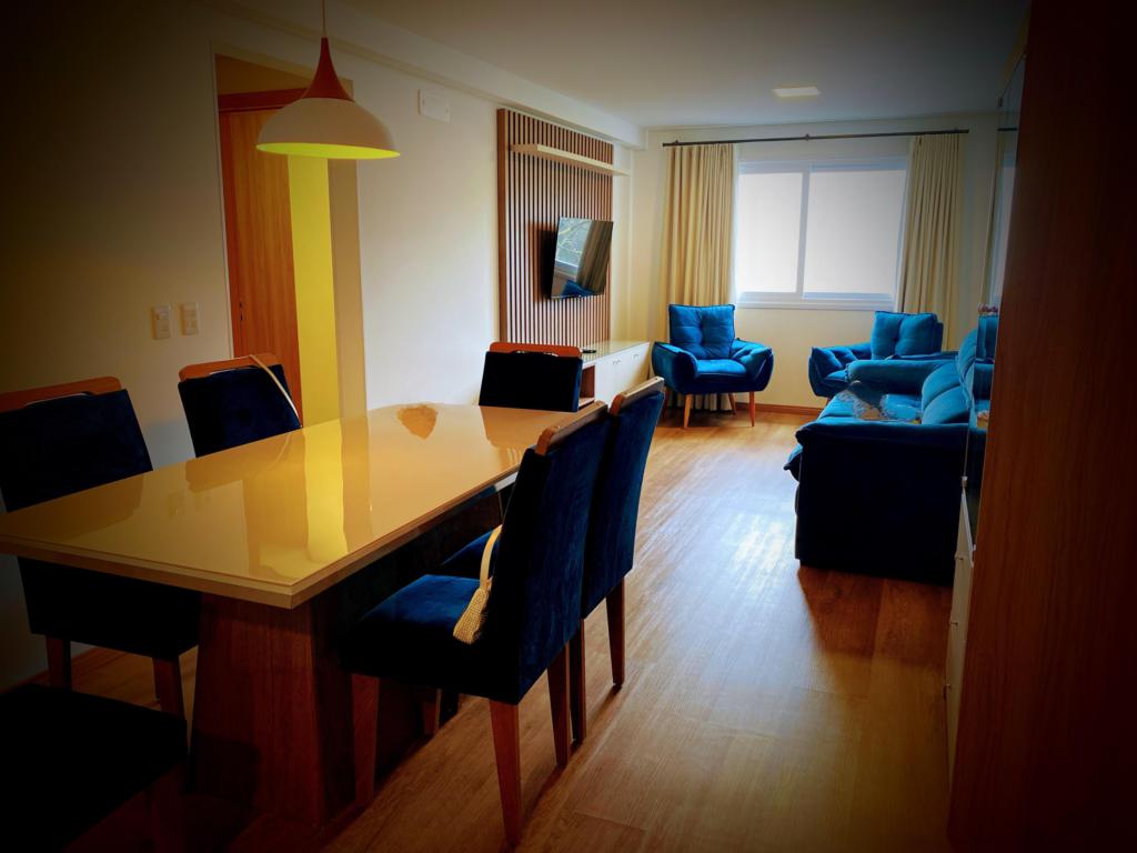 Características: 02 Dormitórios (01 suíte), Água Quente, Área de Serviço, Banheiro Social, Cozinha integrada com churrasqueira, Garagem, Mobiliado, Sala de Estar, Sala de Jantar, Split