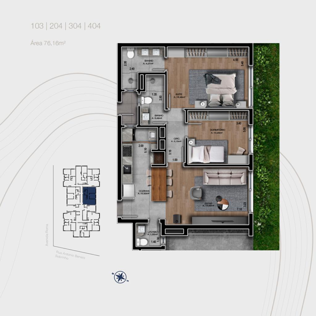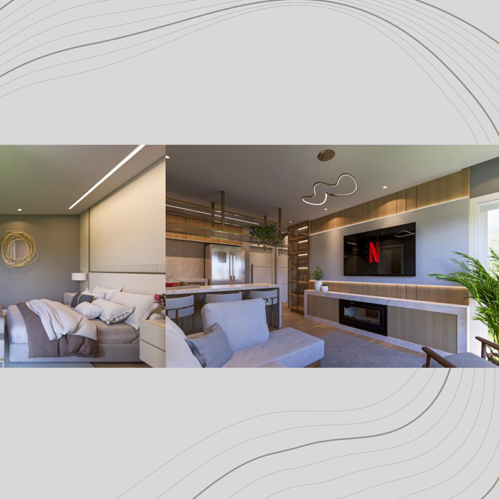 Características: 02 Dormitórios (01 suíte), Área de Serviço, Banheiro Social, Cozinha integrada com churrasqueira, Espera para calefação, Espera para lareira, Espera para split, Sala de Estar, Sala de Jantar