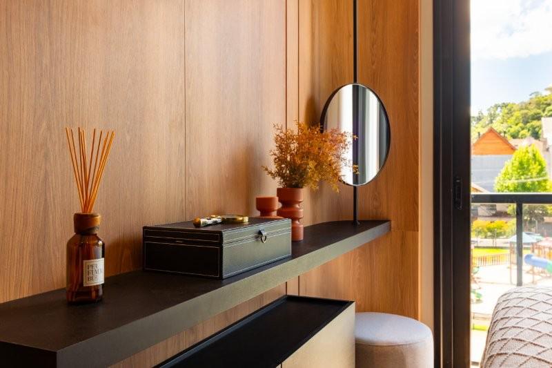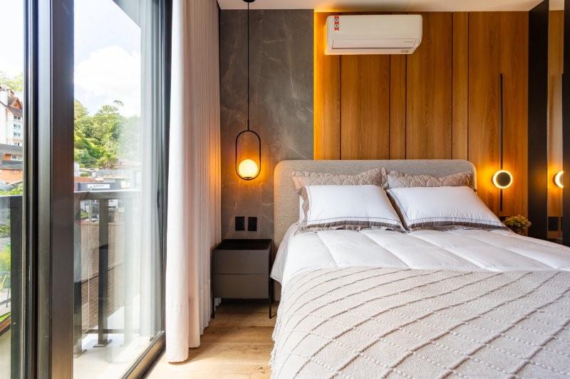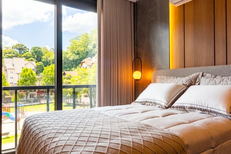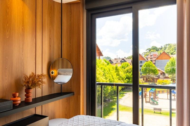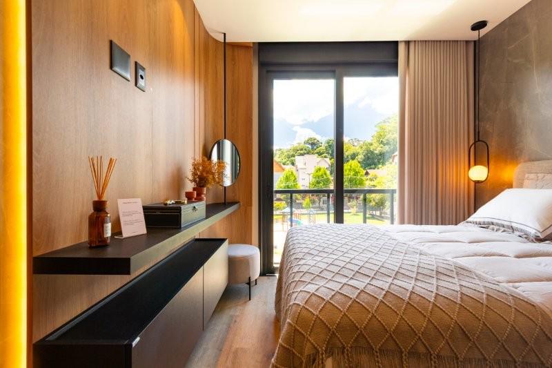 Apartamento de 02 suítes, mobiliado, em um projeto arquitetônico contemporâneo que resgata as raízes da nossa região. Amplo terreno com paisagismo excepcional em uma localização privilegiada a 100 metros da charmosa Rua Coberta no Centro de Gramado.