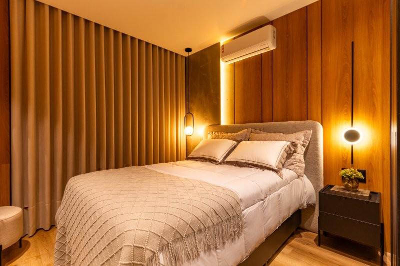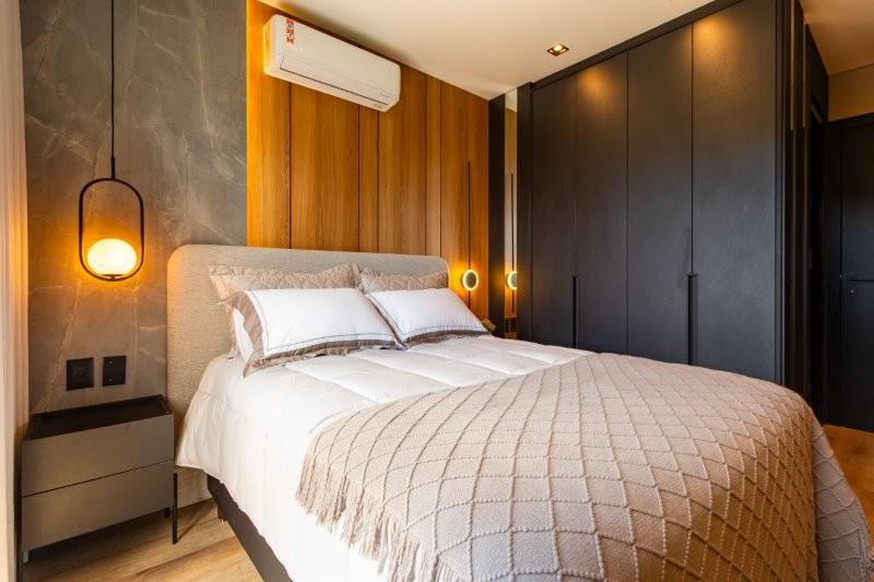 Características: 02 Dormitórios (02 suítes), Área de Serviço, Cozinha integrada com churrasqueira, Fechadura digital, Hall, Lavabo, Mobiliado, Sala de Estar com lareira, Sala de Jantar, Split
