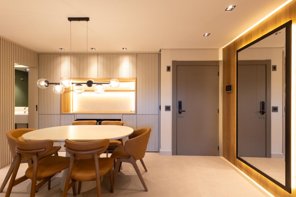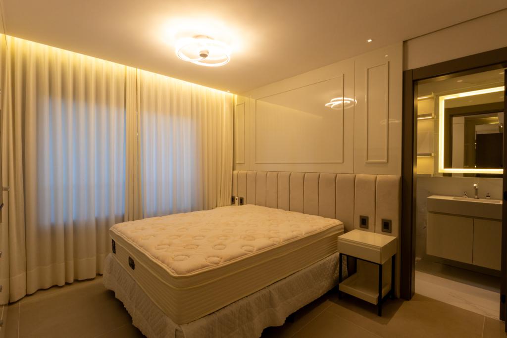 Composto por 2 suítes, lavabo, cozinha americana com churrasqueira, área de serviço separada, e um living com dois ambientes iluminado, lareira e sacada, o imóvel é um convite ao bem-viver. O ar-condicionado cassete, o projeto de mobiliário e decoração impecáveis, e cada elemento pensado com esmero fazem deste lugar um refúgio pronto para receber quem valoriza o alto padrão sem abrir mão do aconchego.