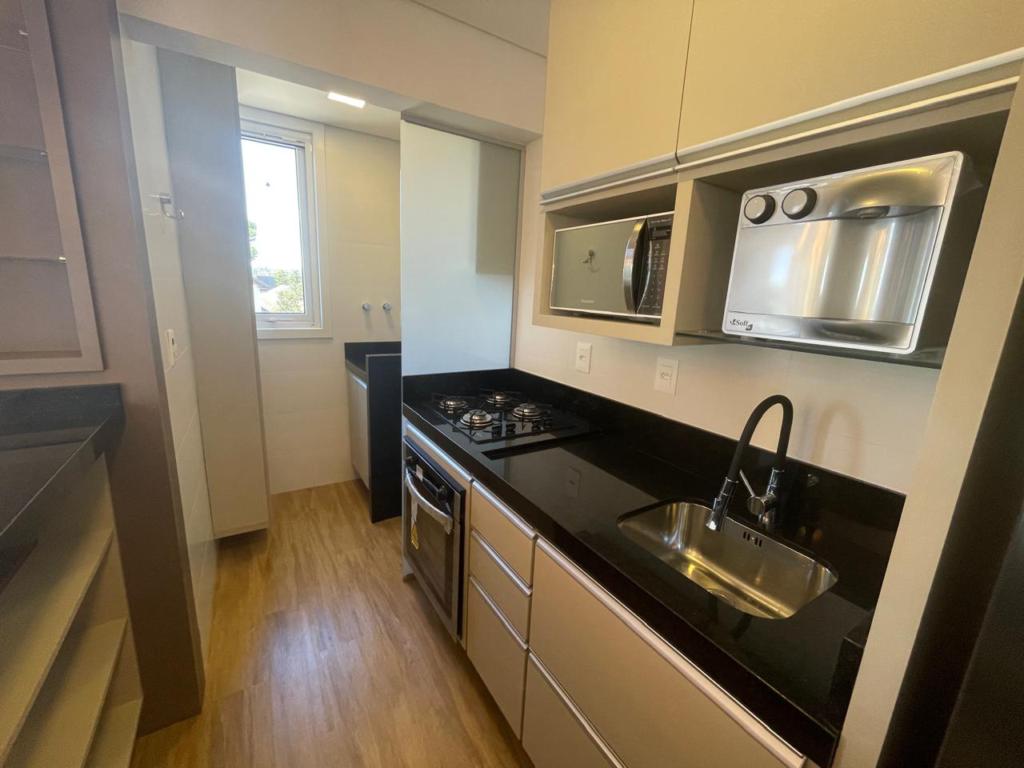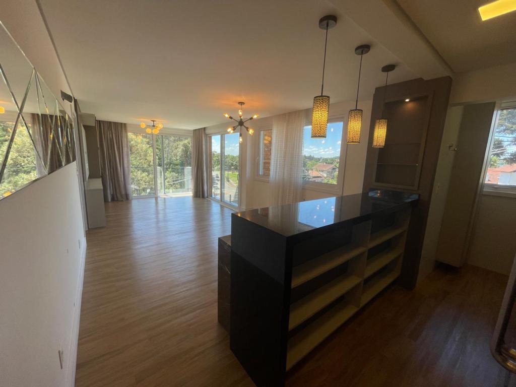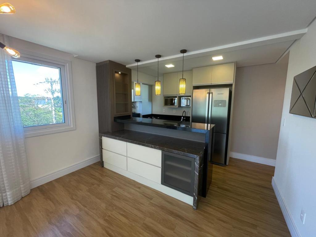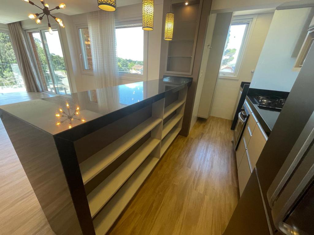 Características: 02 Dormitórios (01 suíte), Água Quente, Área de Serviço, Banheiro Social, Cozinha Americana, Espera para calefação, Espera para Churrasqueira, Espera para lareira, Espera para split, Esquadrias externas em PVC com vidro duplo, Fechadura digital, Forro de gesso, Garagem para 02 carros, Hall, Isolamento térmico e acústico, Móveis fixos, Piso Vinílico, Pisos frios em porcelanato, Sacada, Sala de Estar, Sala de Jantar, Vista Panorâmica