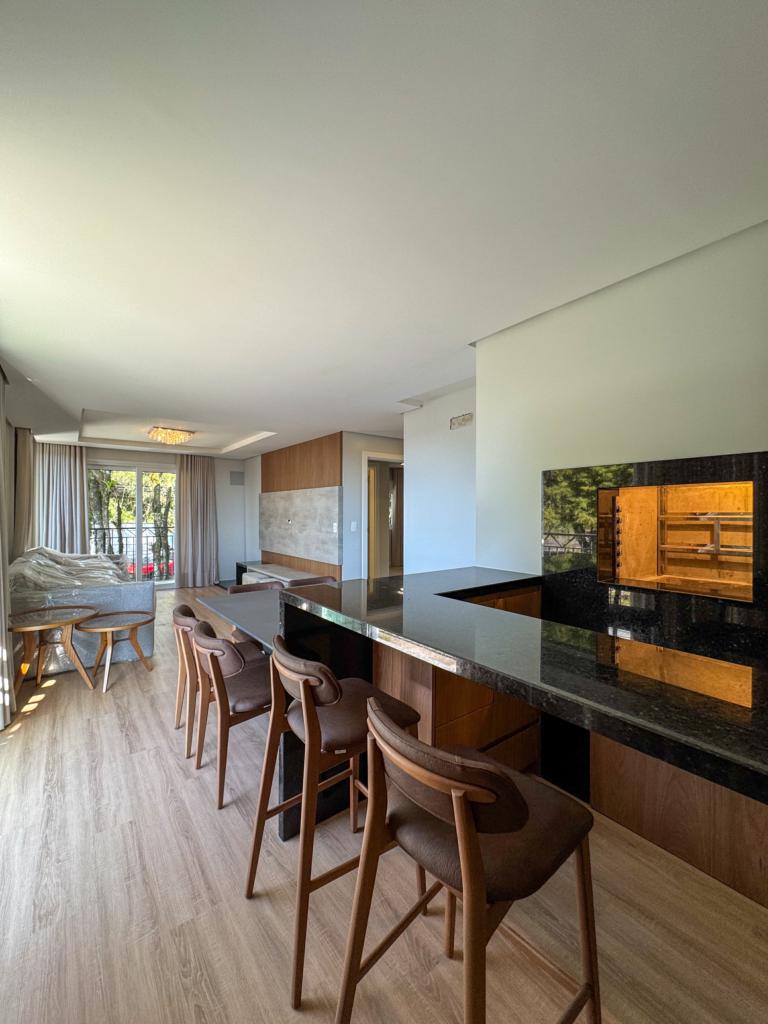 Apartamento de 02 suítes, com lavabo, cozinha integrada com churrasqueira, sala de estar e jantar. Espera de split e lareira. Localizado em Bairro residencial tranquilo a poucos minutos do Centro de Gramado.