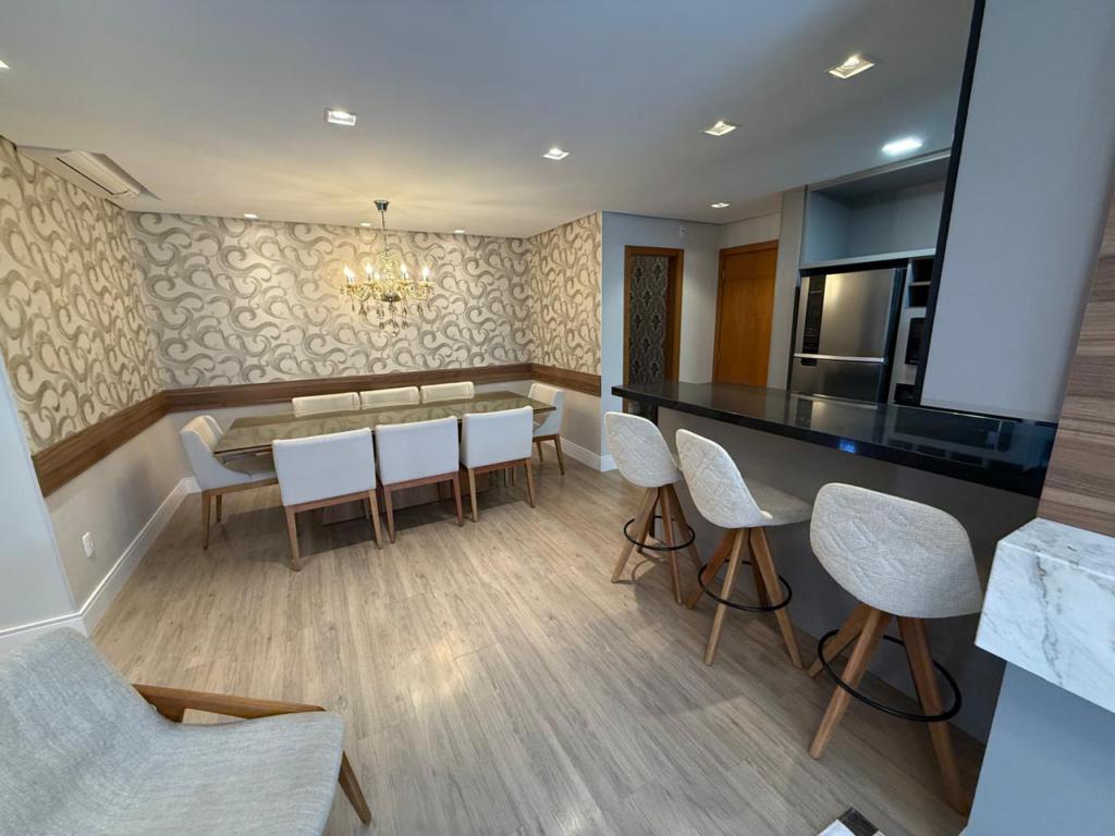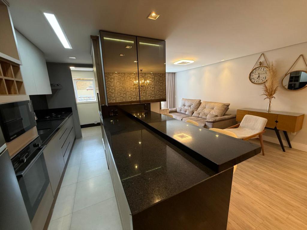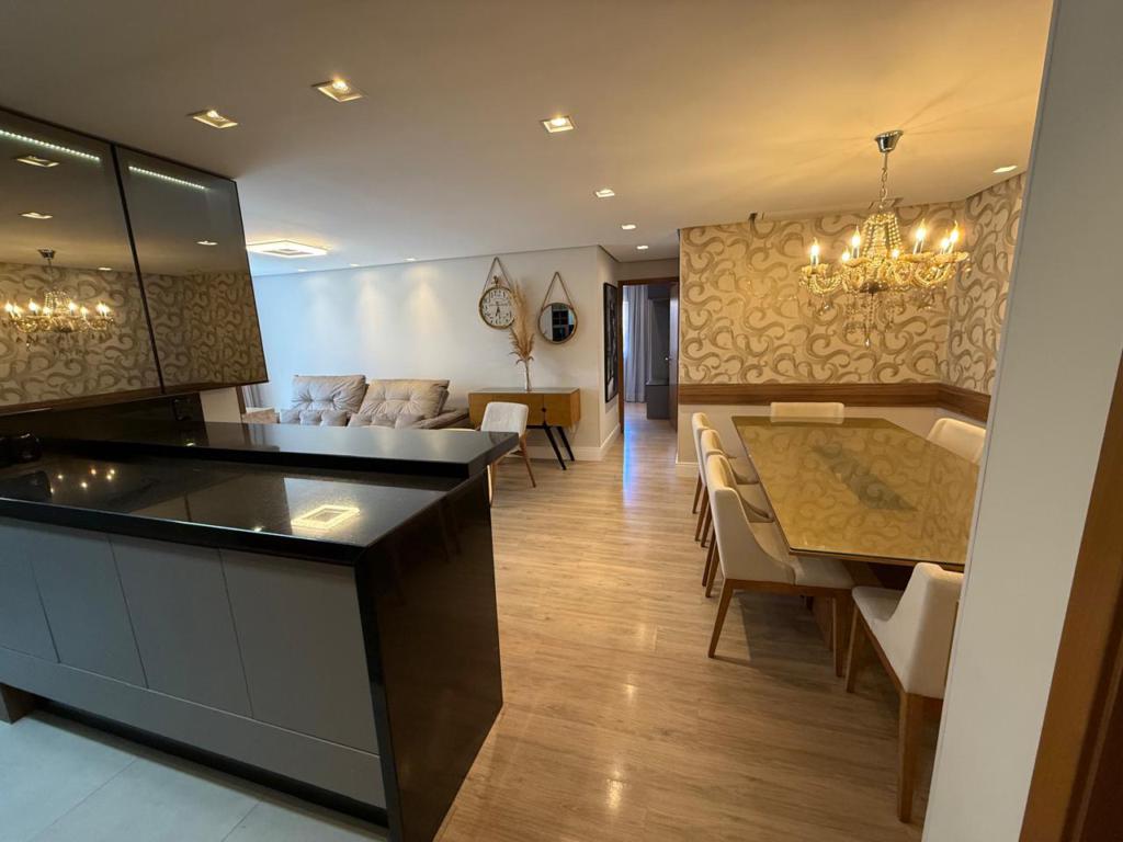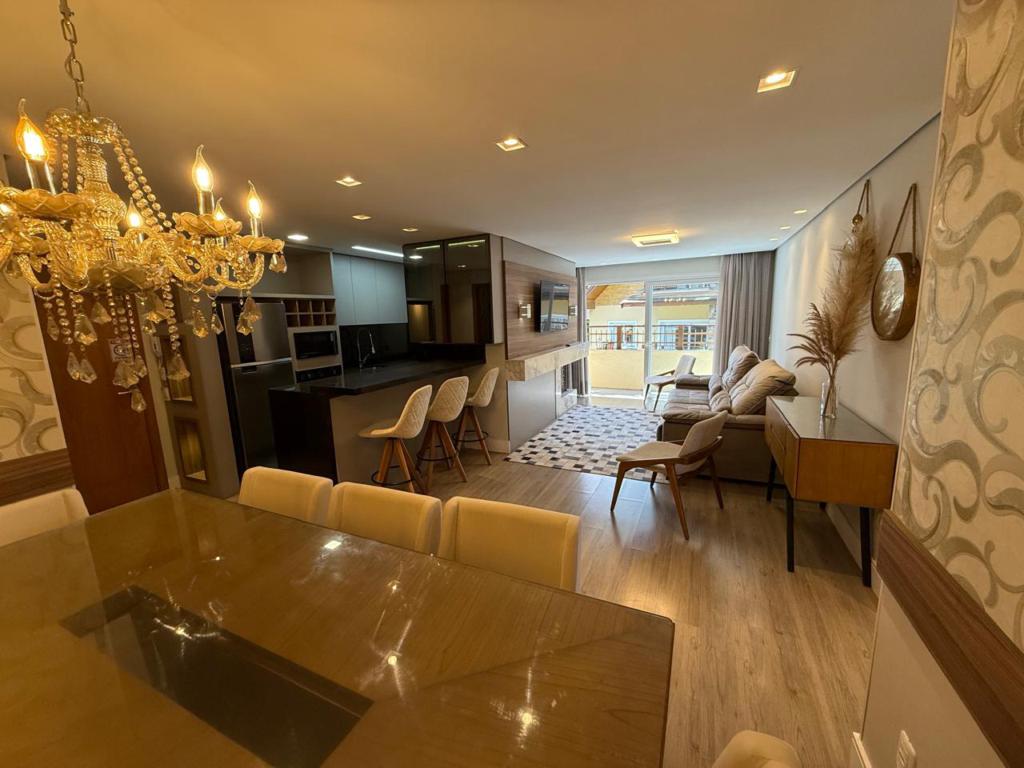 Características: 02 Suítes, Água Quente, Área de Serviço, Cozinha integrada com churrasqueira, Espera para calefação, Fechadura digital, Garagem para 03 carros, Lavabo, Mobiliado, Sacada, Sala de Estar com lareira, Sala de Jantar, Split