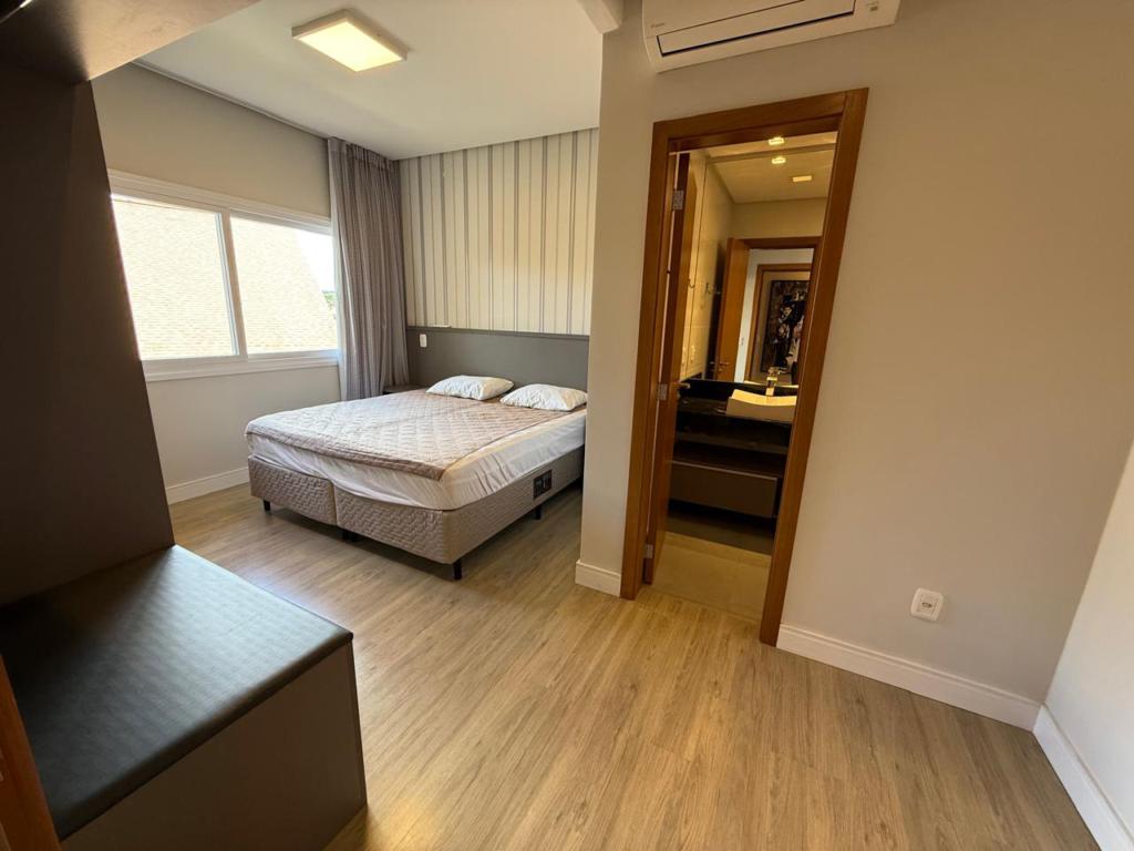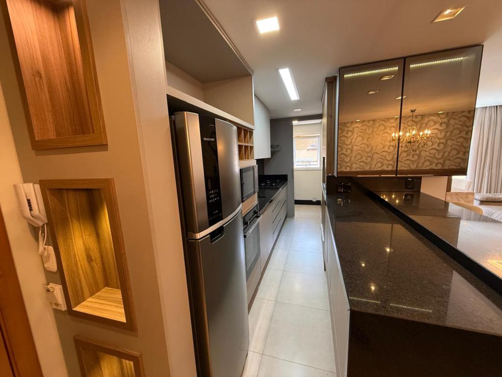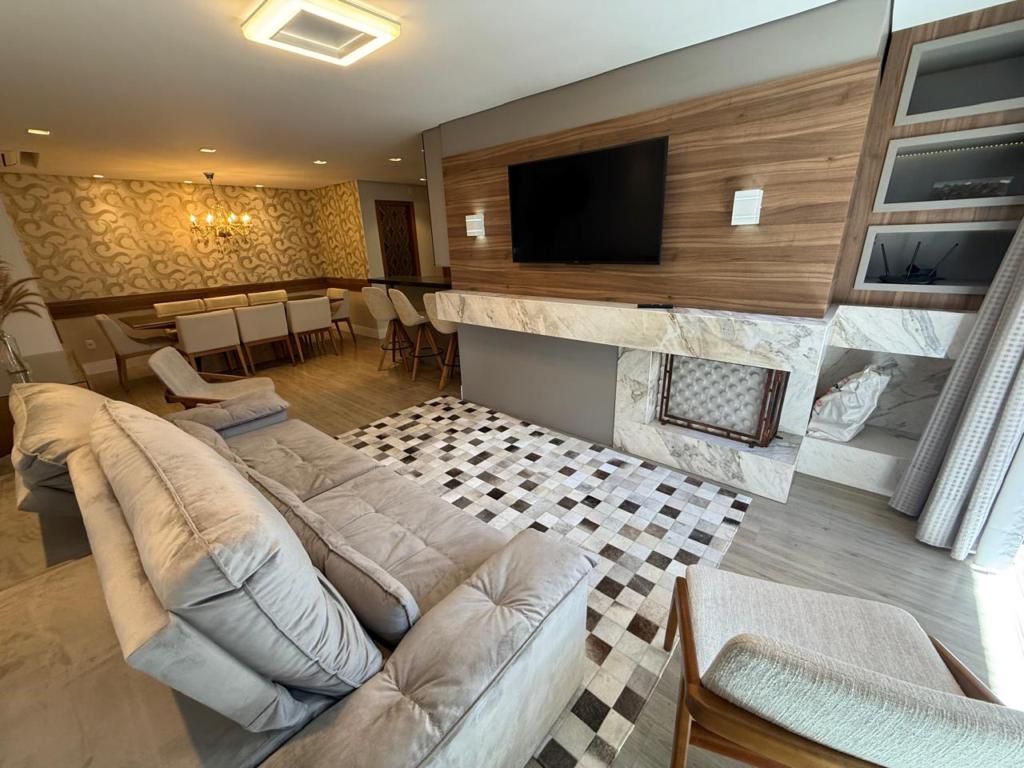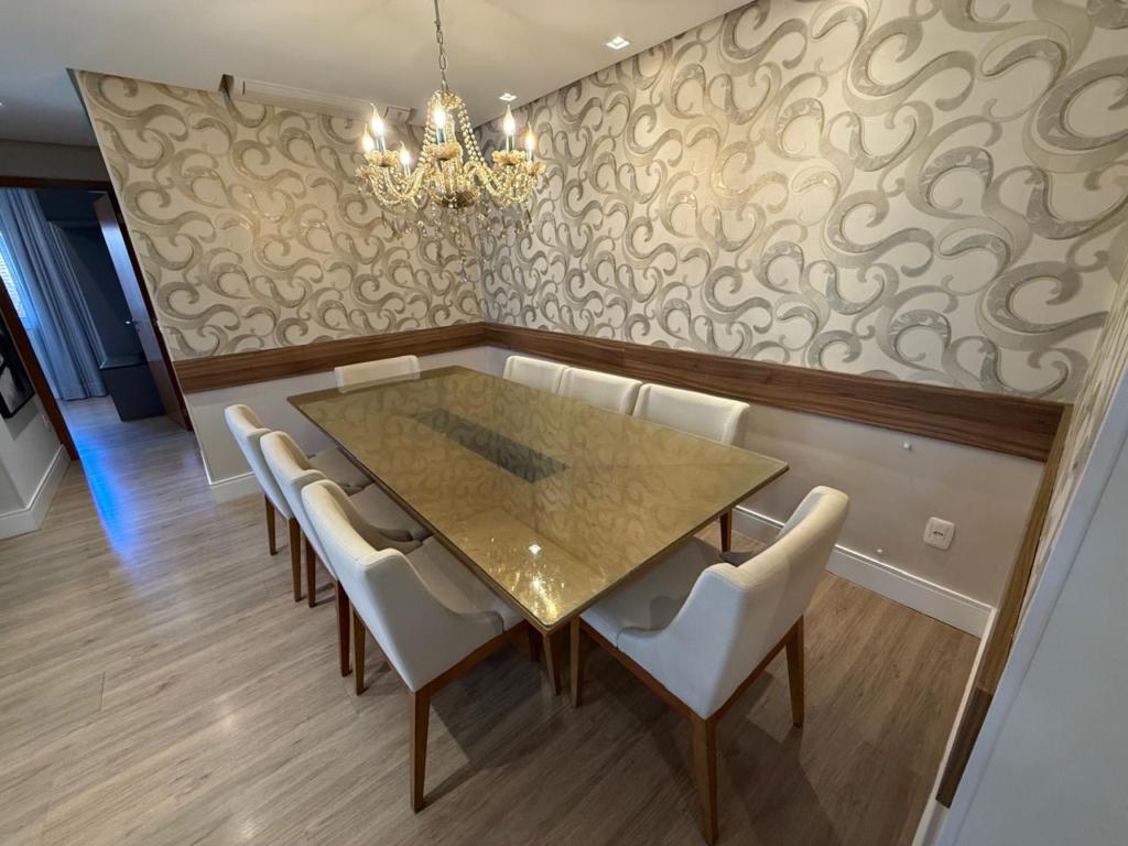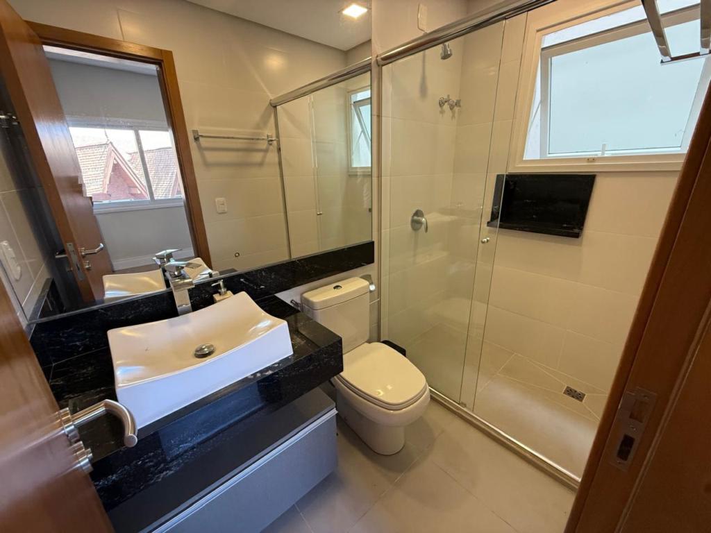 Características: 02 Suítes, Água Quente, Área de Serviço, Cozinha integrada com churrasqueira, Espera para calefação, Fechadura digital, Garagem para 03 carros, Lavabo, Mobiliado, Sacada, Sala de Estar com lareira, Sala de Jantar, Split