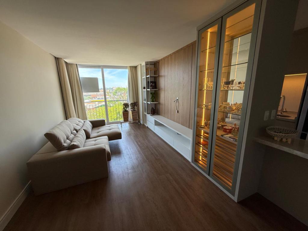 Apartamento de 02 dormitórios, sendo a suíte master com hidromassagem, sala de estar com lareira, sala de jantar, cozinha integrada com churrasqueira, sacada envidraçada. Totalmente mobiliado e decorado.