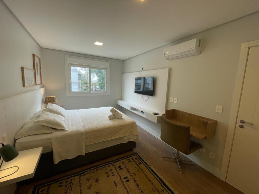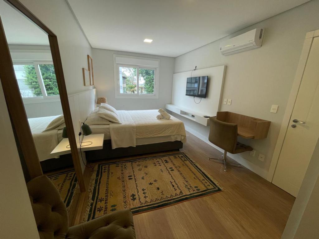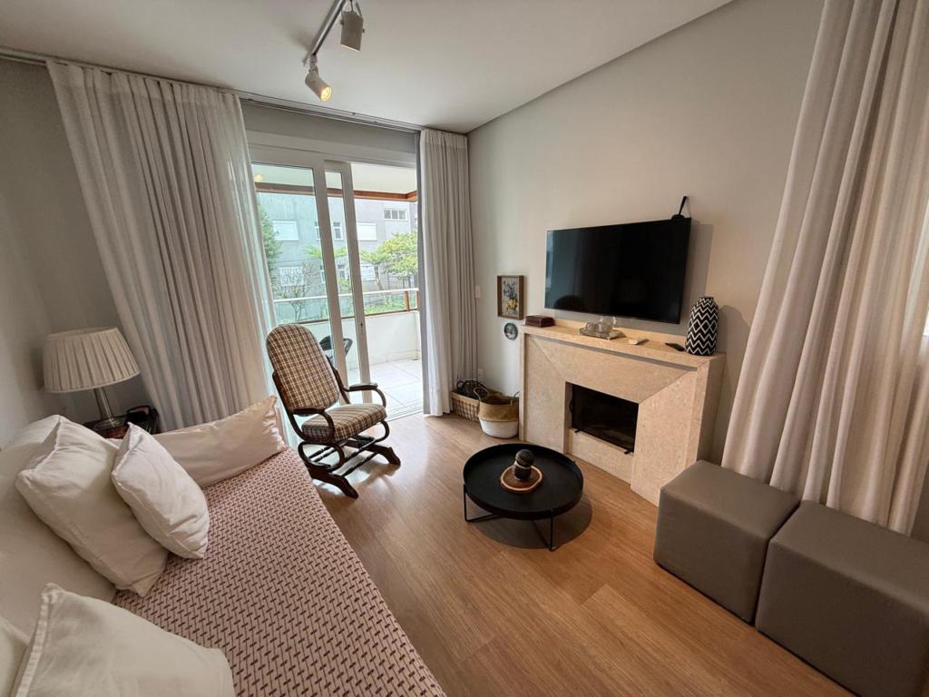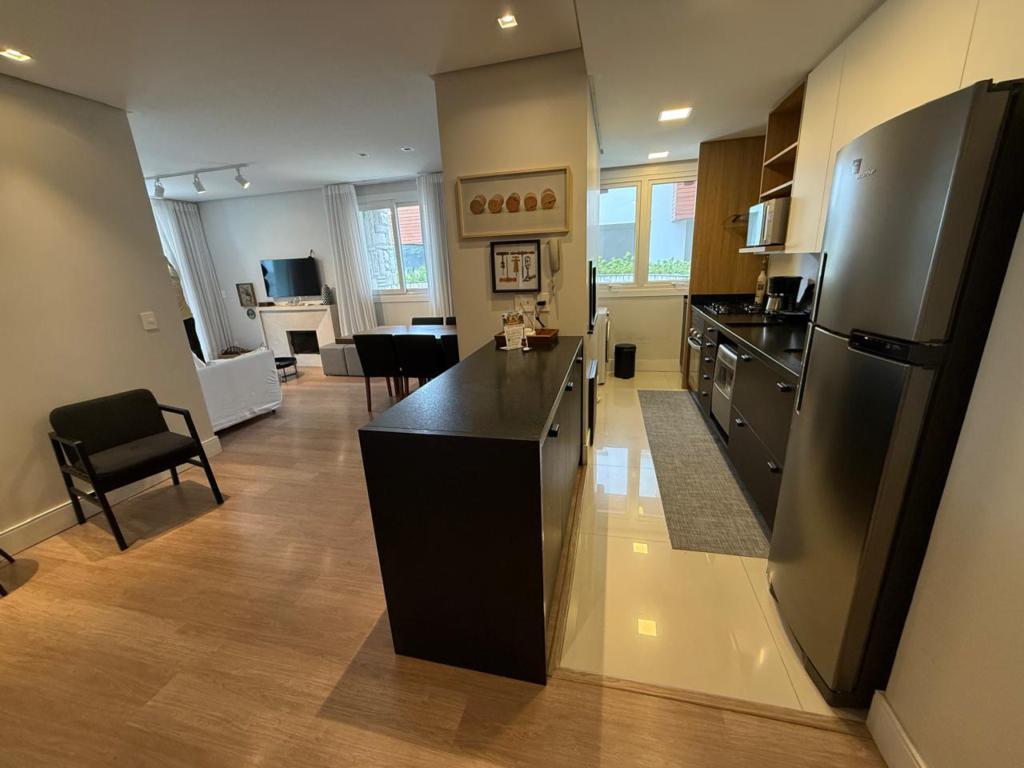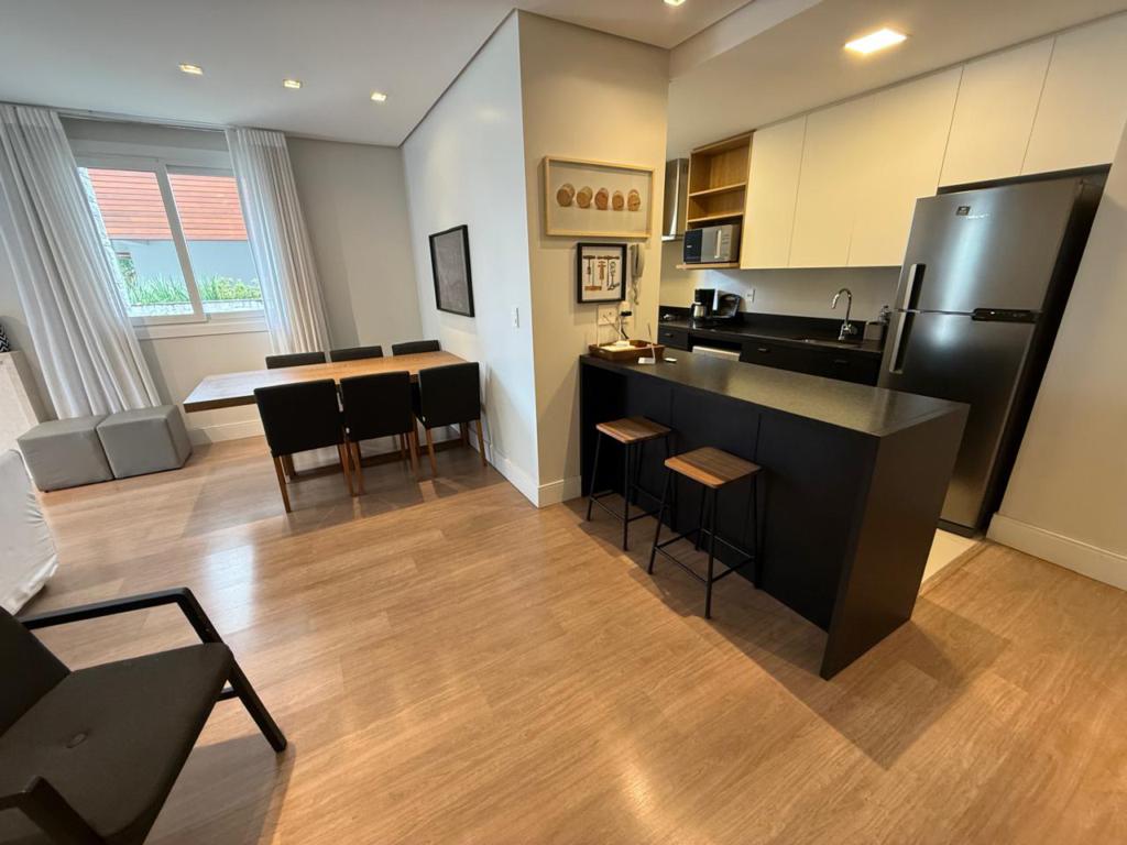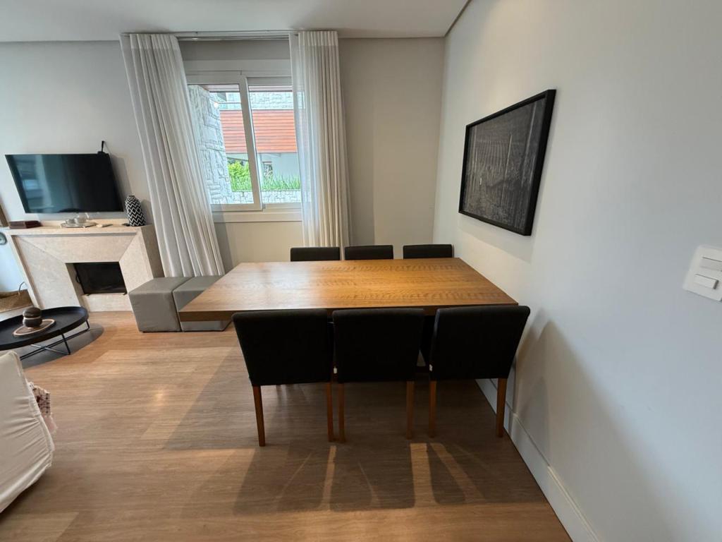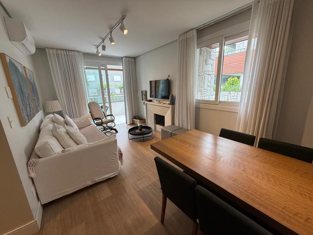 Características: 02 Suítes, Água Quente, Área de Serviço, Cozinha integrada com churrasqueira, Espera para calefação, Lavabo, Mobiliado, Sacada, Sala de Estar com lareira, Sala de Jantar, Split instalado em todas as peças