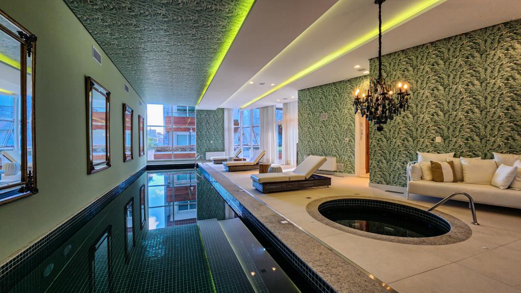 Infraestrutura: 4 elevadores com biometria, Hall de entrada, Pátio | Jardim, Piscina Aquecida, Portaria 24 horas, Porteiro Eletrônico, Sala de Fitness Equipada, Salão de festas