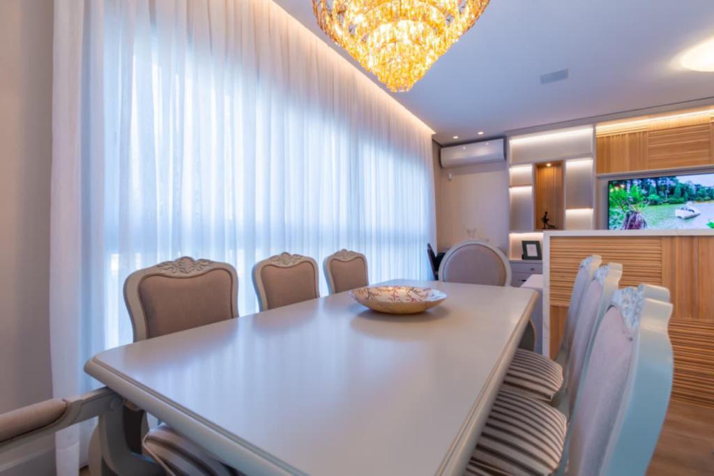 Características: 03 Dormitórios (02 suites), Água Quente, Área de Serviço, Banheiro Social, Cozinha integrada com churrasqueira, Lareira, Mobiliado, Sala de Estar, Sala de Jantar, Split