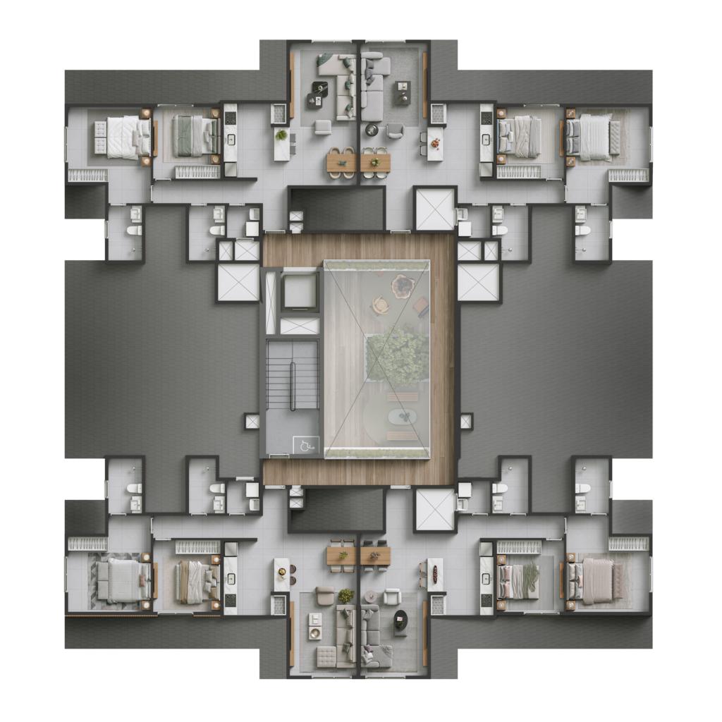Infraestrutura: Aproveitamento de água da chuva, Área de Lazer, Elevador inteligente, Energia solar nas áreas condominiais, Espaço Fire Fit (Espaço para fogueira ao ar livre), Espaço fitness, Espaço gourmet com churrasqueira, Gás Central, Hall de entrada mobiliado, Jardins e Floreiras tratados, Medidores individuais de água, luz e gás, Piscina Aquecida, Playground, Porteiro eletrônico com vídeo, Reconhecimento Facial, Sauna, SPA