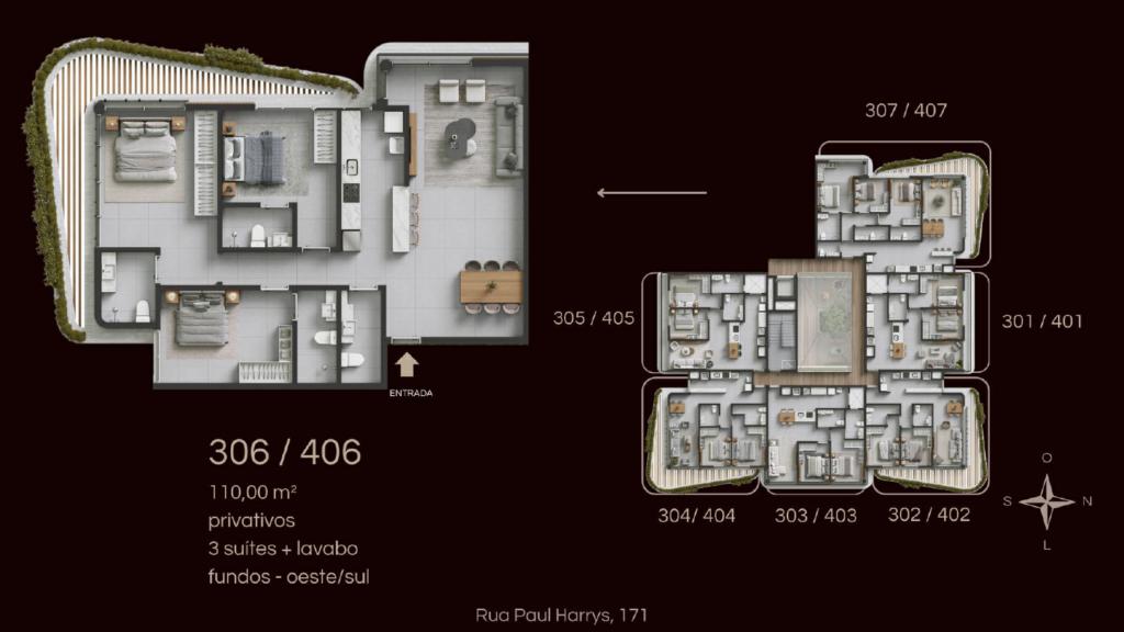 Características: 03 Suítes, Área de Serviço, Cozinha integrada, Espera para água quente, Espera para piso aquecido, Espera para split, Fechadura digital, Lavabo, Mezanino, Sala de Estar, Sala de Jantar