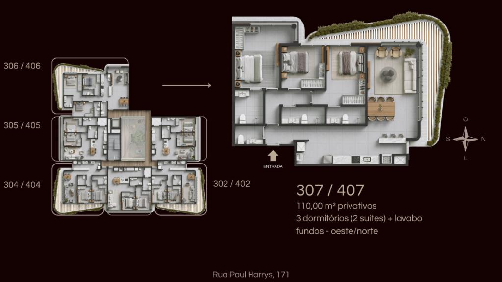 Características: 03 Dormitórios (02 suites), Área de Serviço, Banheiro Social, Cozinha integrada, Espera para água quente, Espera para piso aquecido, Espera para split, Fechadura digital, Lavabo, Mezanino, Sala de Estar, Sala de Jantar