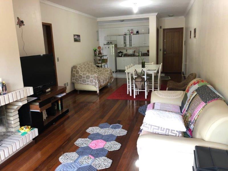 Amplo apartamento de 03 dormitórios (01 suíte) mobiliado. Sala de estar com lareira. Sala de jantar. cozinha. churrasqueira. Área de serviço.