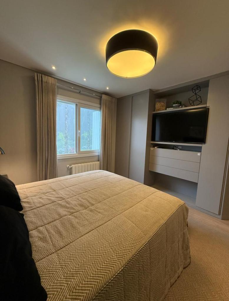 Características: 03 Dormitórios (01 suíte com closet), Água Quente, Área de Serviço, Banheiro Social, Calefação Instalada, Cozinha integrada com churrasqueira, Esquadrias externas em PVC com vidro duplo, Lavabo, Mobiliado, Sacada integrada, Sala de Estar, Sala de Jantar, Split instalado em todas as peças, Vista para o Vale do Quilombo